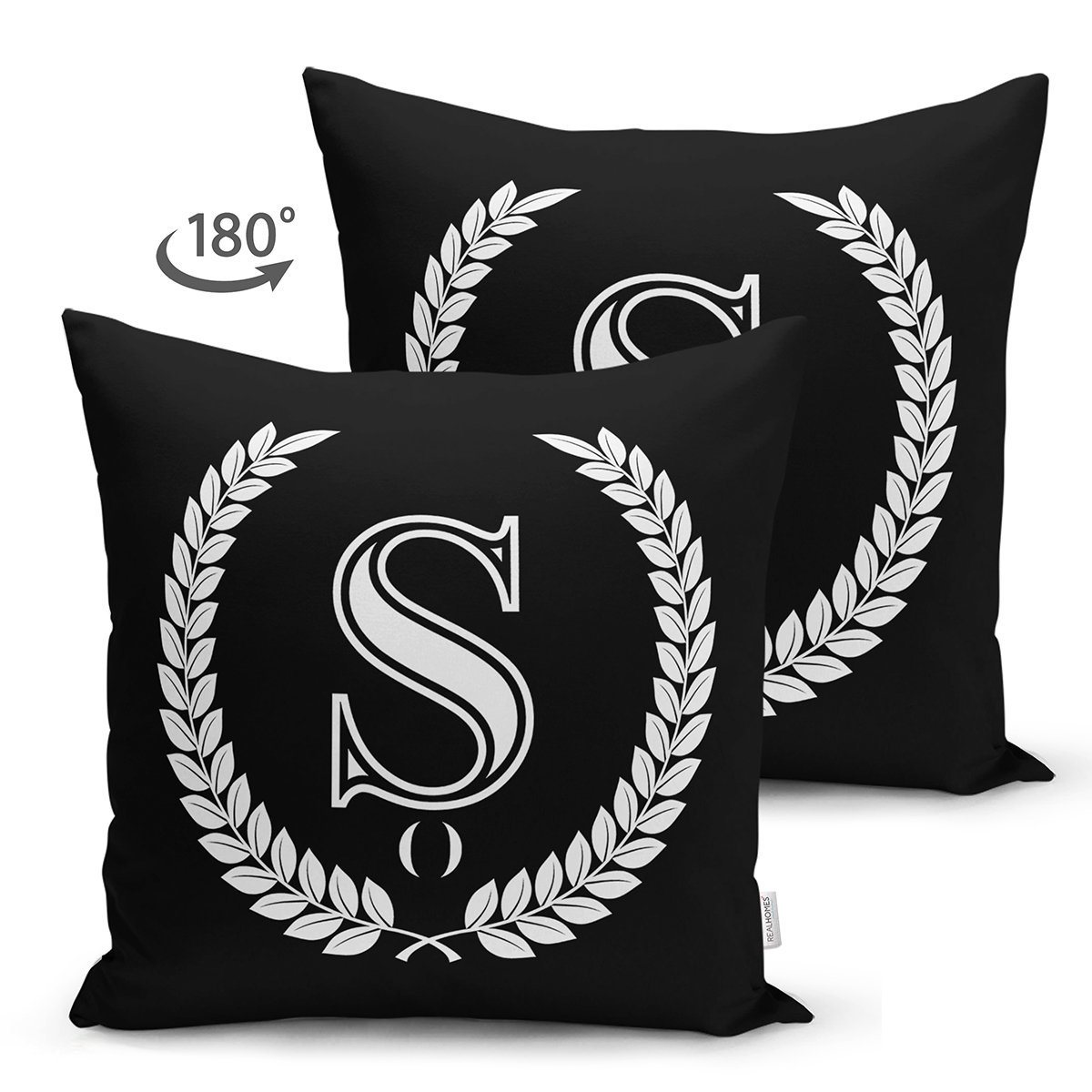 Siyah Beyaz Çelenkli Ş Harfi Özel Tasarım Modern Suet Yastık Kırlent Kılıfı