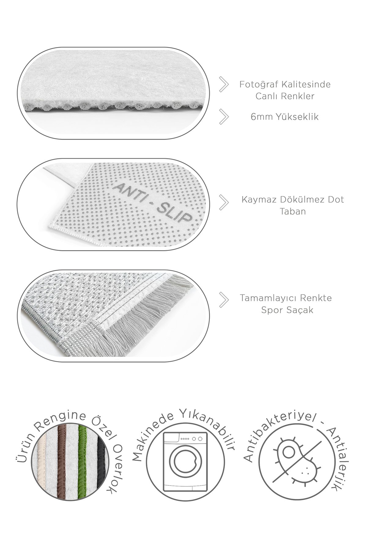 • Ürün Malzemesi: Üst yüzeyi kadife, tabanı 6 mm kaymaz taban malzemesi.
