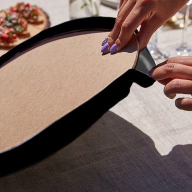 Siyah Beyaz Çizgili Düz Siyah Özel Tasarımlı Modern Yuvarlak Servis Altlığı & Supla