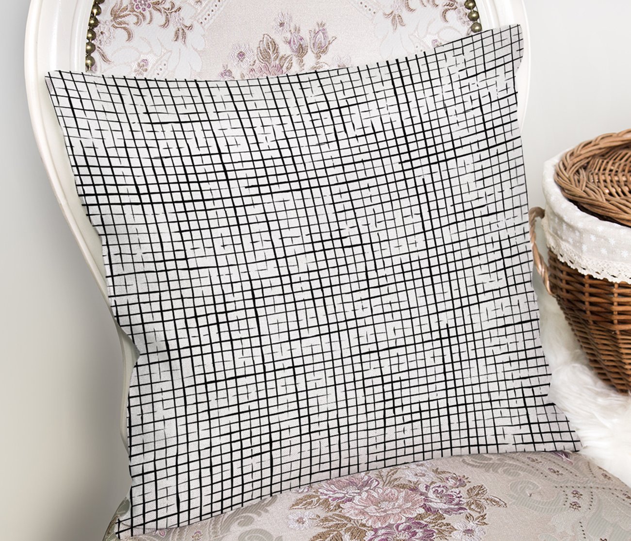 Siyah Beyaz Damalı Modern Kırlent Kılıfı