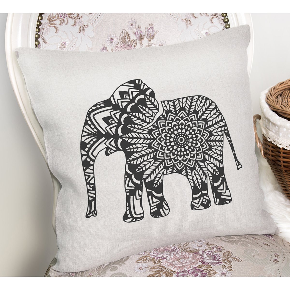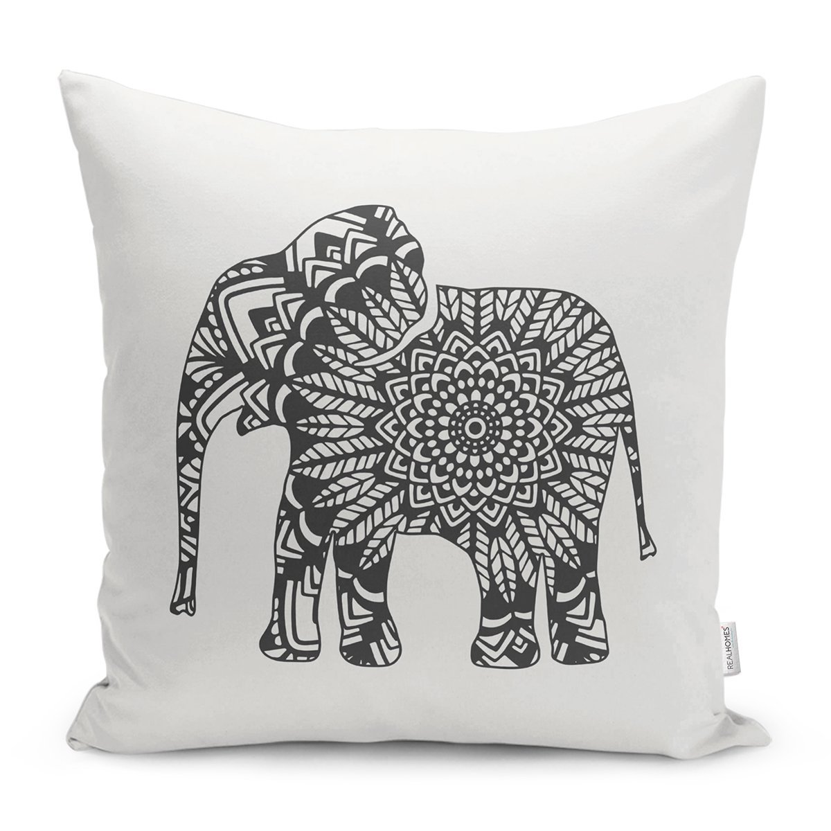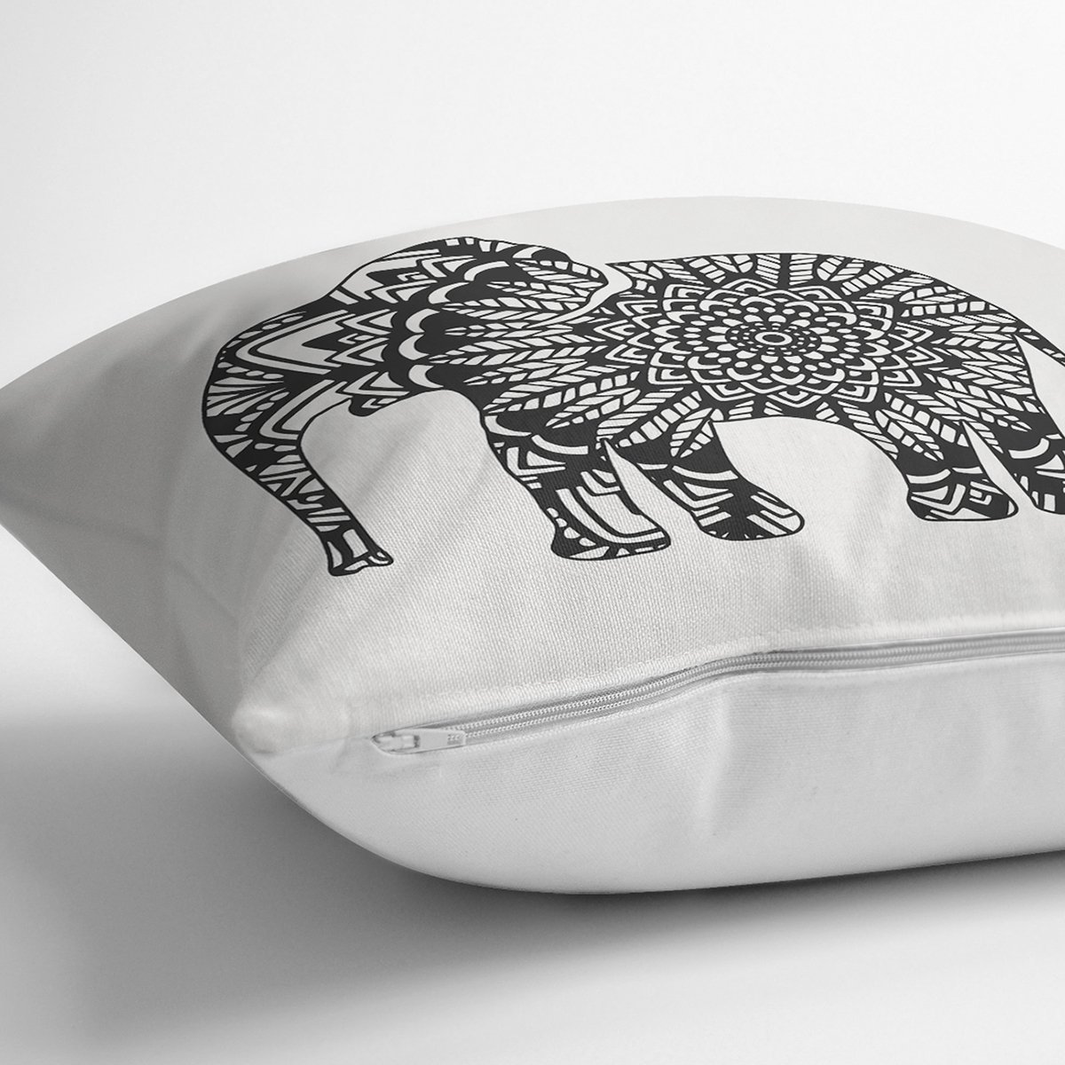 Siyah Beyaz Fil Tasarımlı Dijital Baskılı Yastık Kırlent Kılıfı