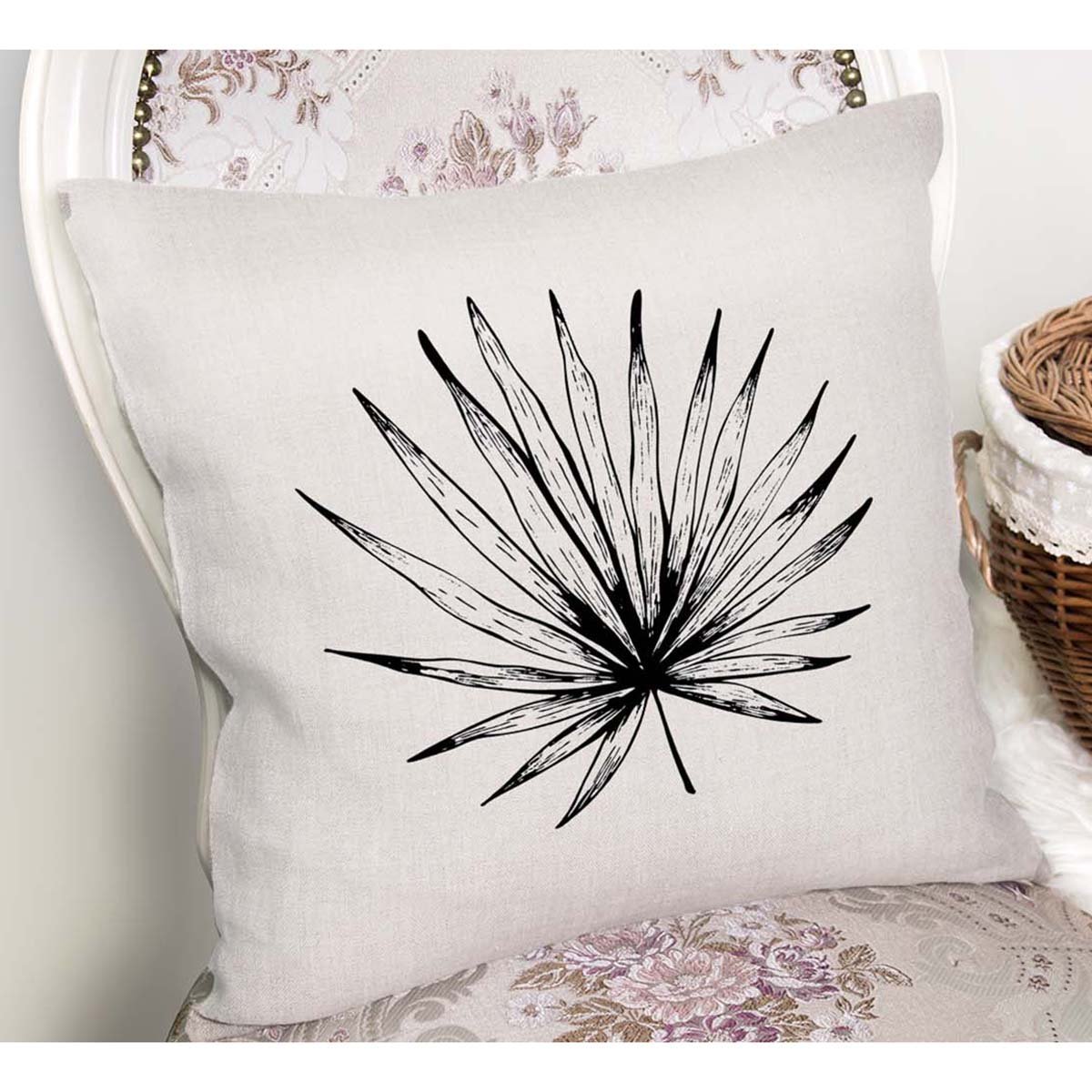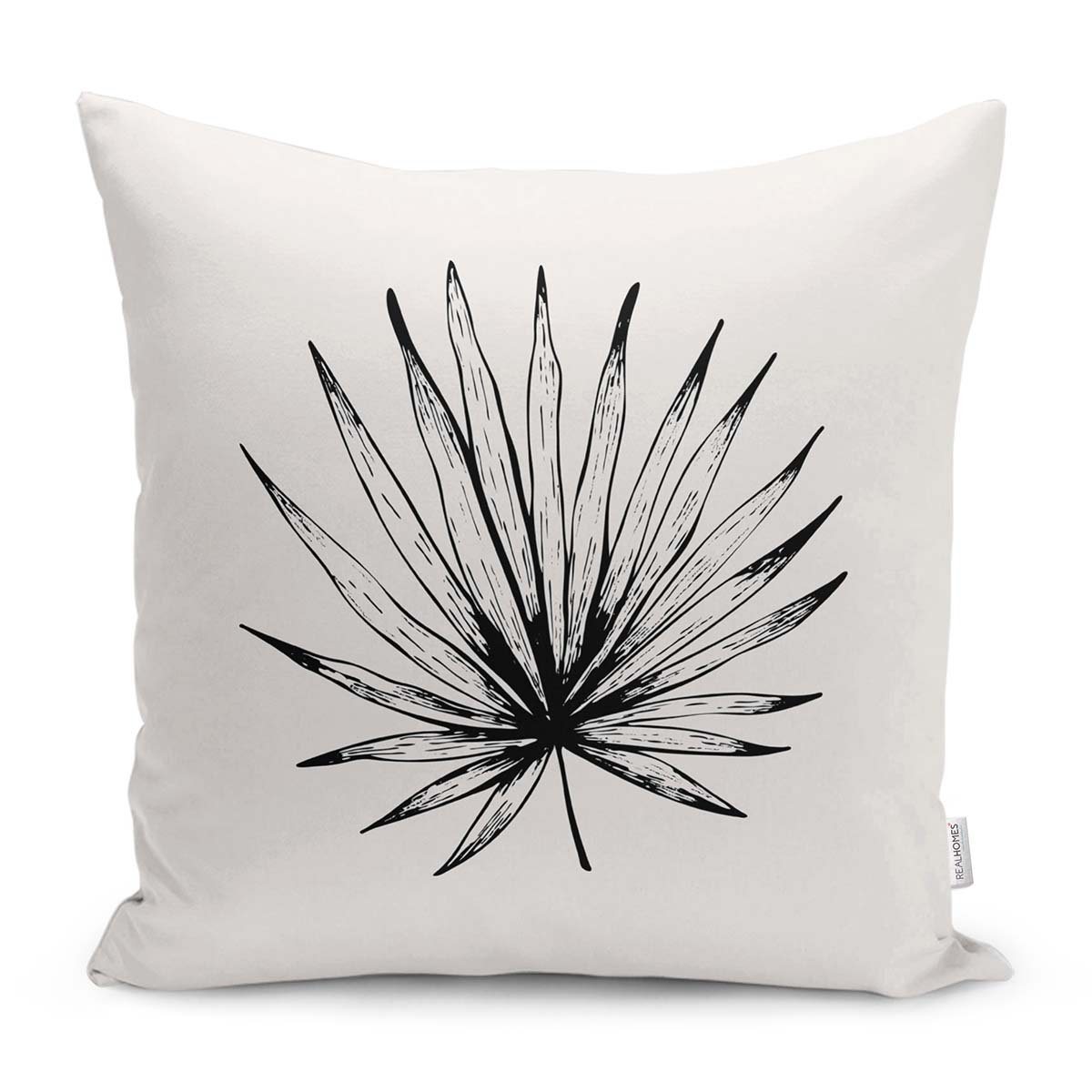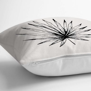 Siyah Beyaz Yaprak Tasarımlı Dekoratif Yastık Kırlent Kılıfı