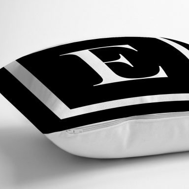 Siyah Zemin Beyaz Çerçeveli E Harfi Dijital Baskılı Kırlent Kılıfı