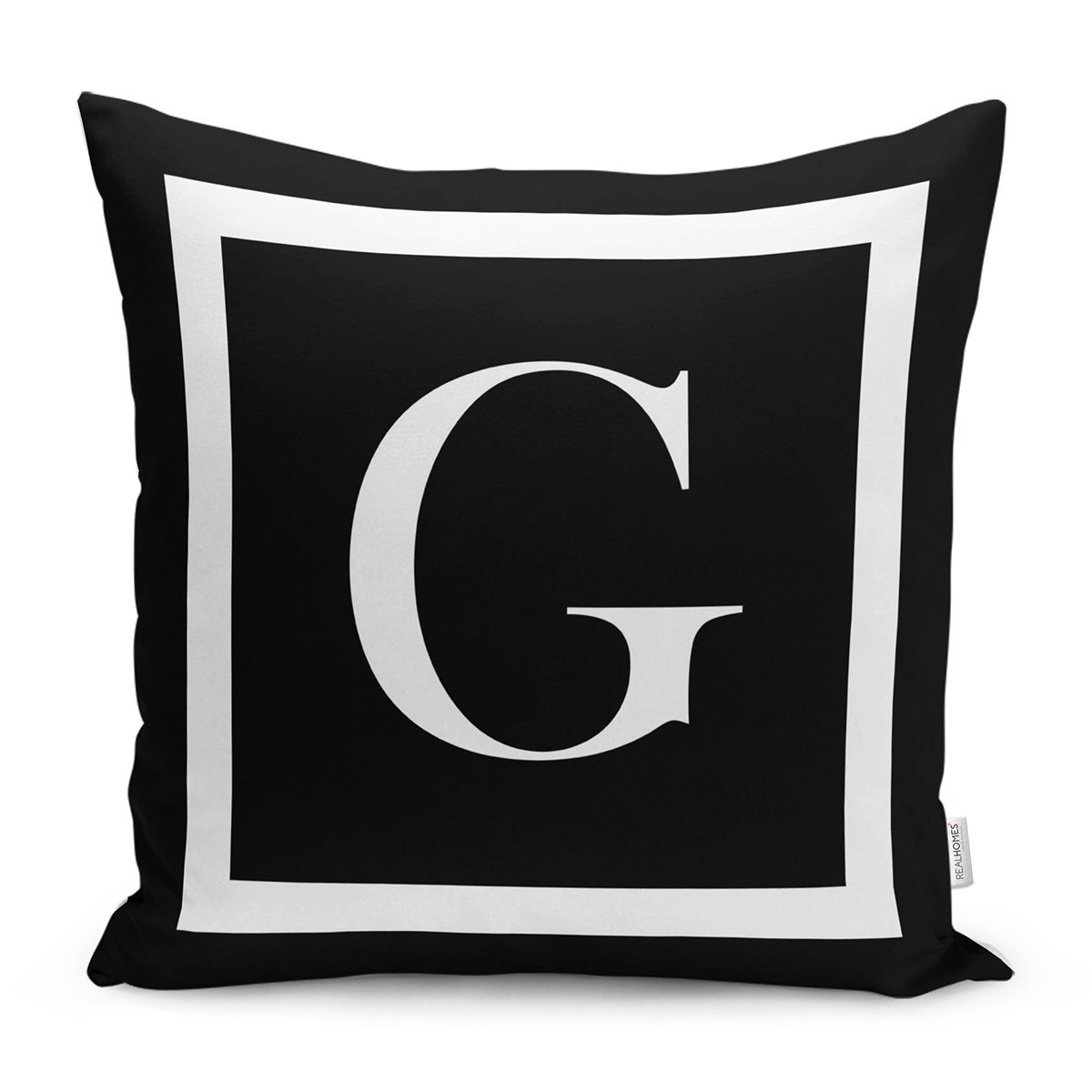 Siyah Zemin Beyaz Çerçeveli G Harfi Dijital Baskılı Kırlent Kılıfı