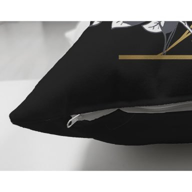 Siyah Zemin Beyaz Gül Motifli Gold D Harfi Özel Tasarım Modern Suet Yastık Kırlent Kılıfı