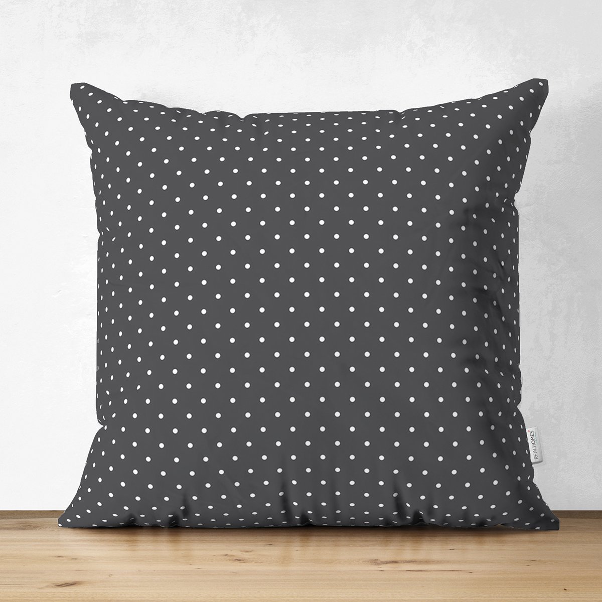 Siyah Zemin Üzerinde Beyaz Puantiye Desenli Dijital Baskılı Modern Süet Yastık Kırlent Kılıfı