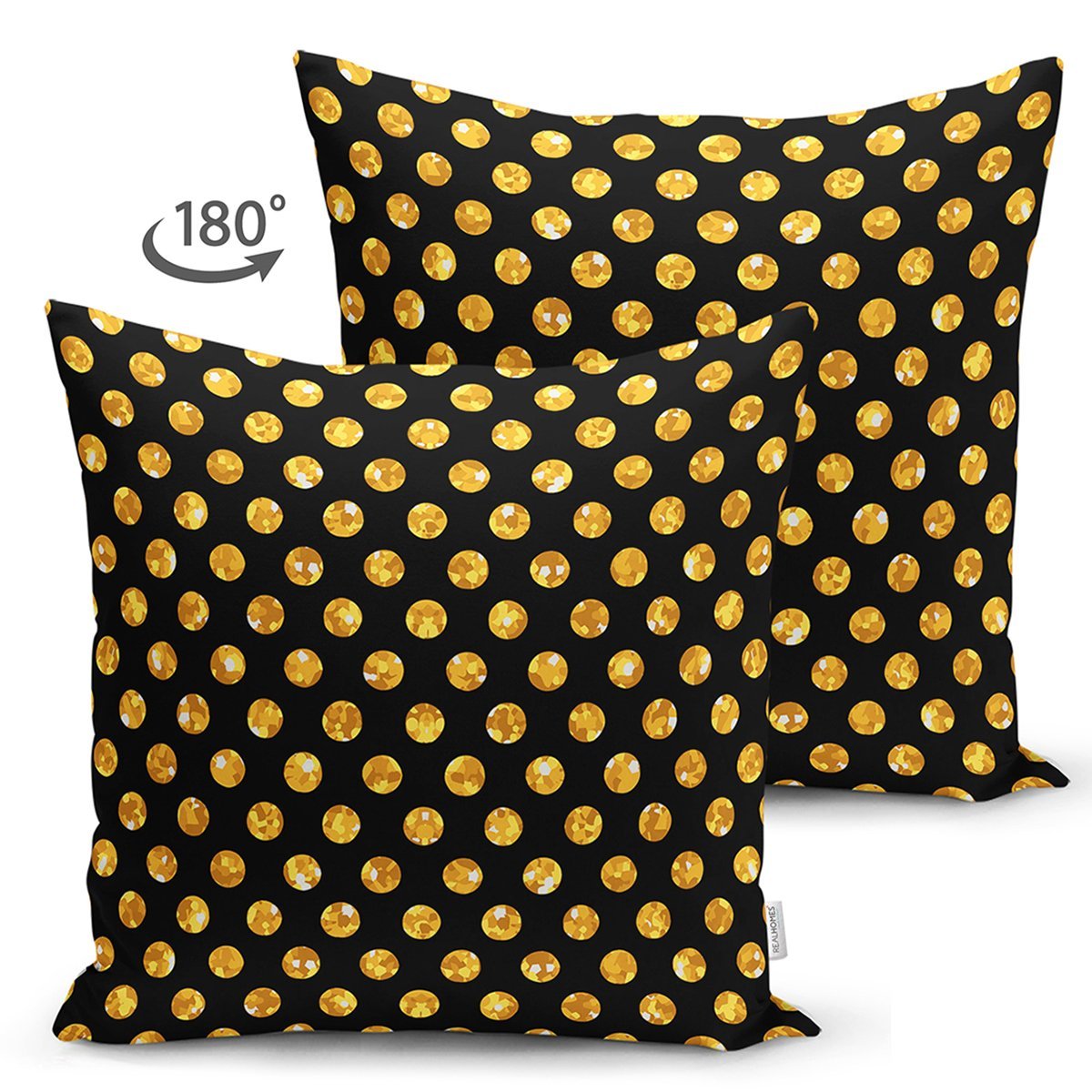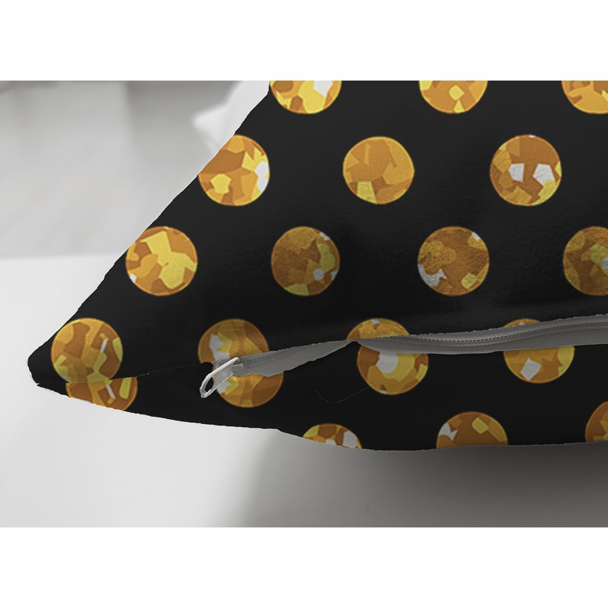 Siyah Zemin Üzerinde Gold Renkli Puantiyeli Dijital Baskılı Modern Süet Yastık Kırlent Kılıfı