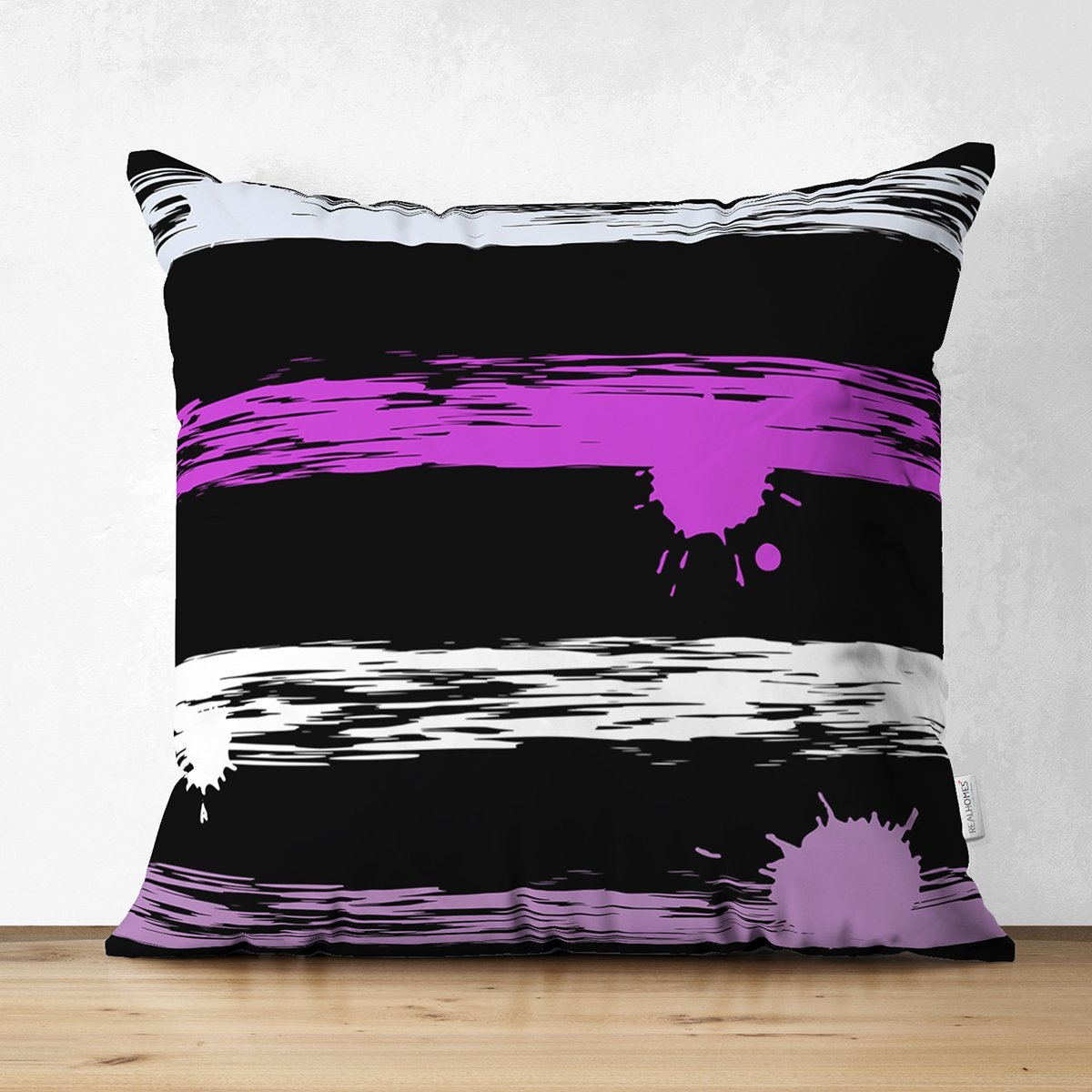 Siyah Zemin Üzerinde Renkli Puantiyeli Dijital Baskılı Modern Süet Yastık Kırlent Kılıfı