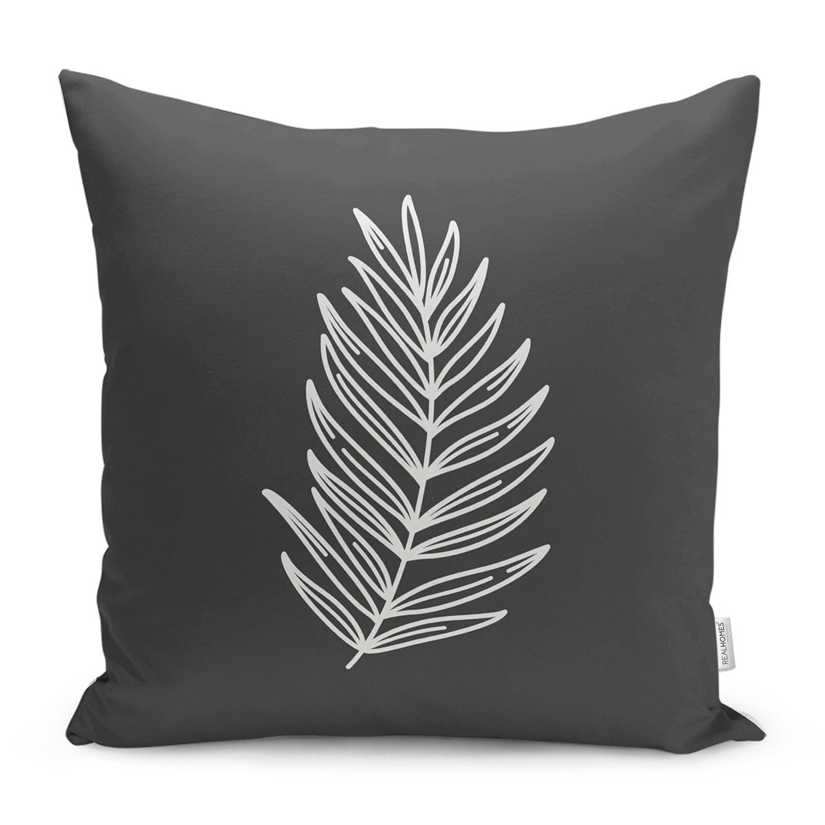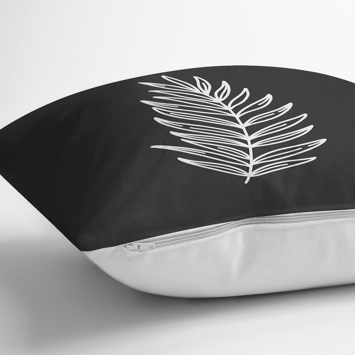 Siyah Zemin Yaprak Çizimli Dijital Baskılı Yastık Kırlent Kılıfı