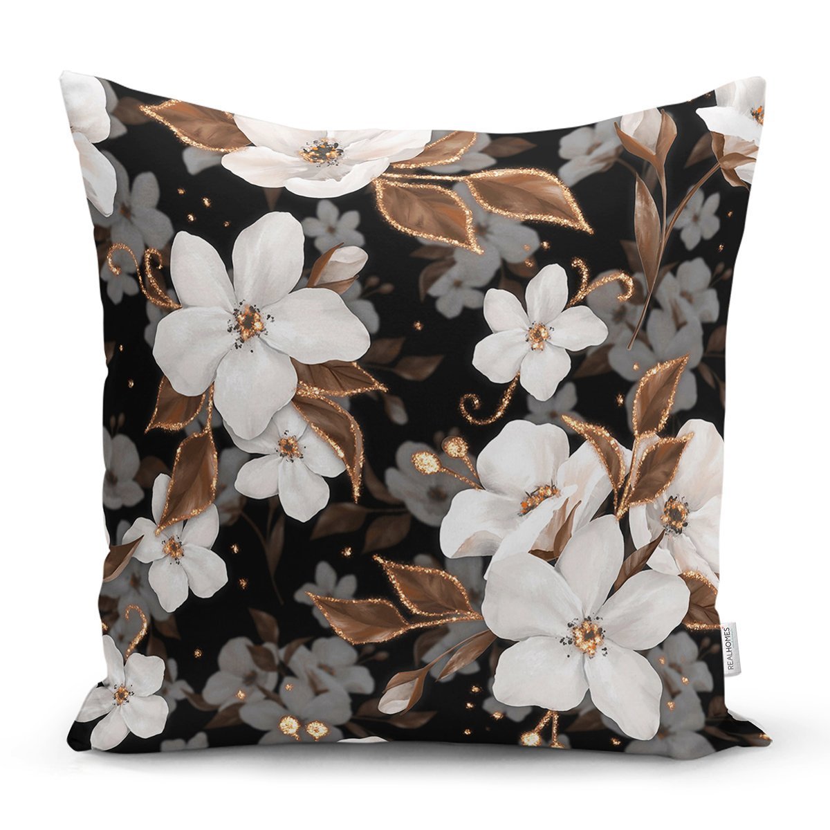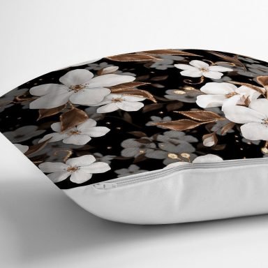 Siyah Zeminde 3D Çiçekler Temalı Modern Yastık Kırlent Kılıfı