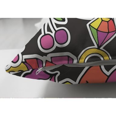Siyah Zeminde Love Özel Tasarımlı Dijital Baskılı Modern Süet Yastık Kırlent Kılıfı