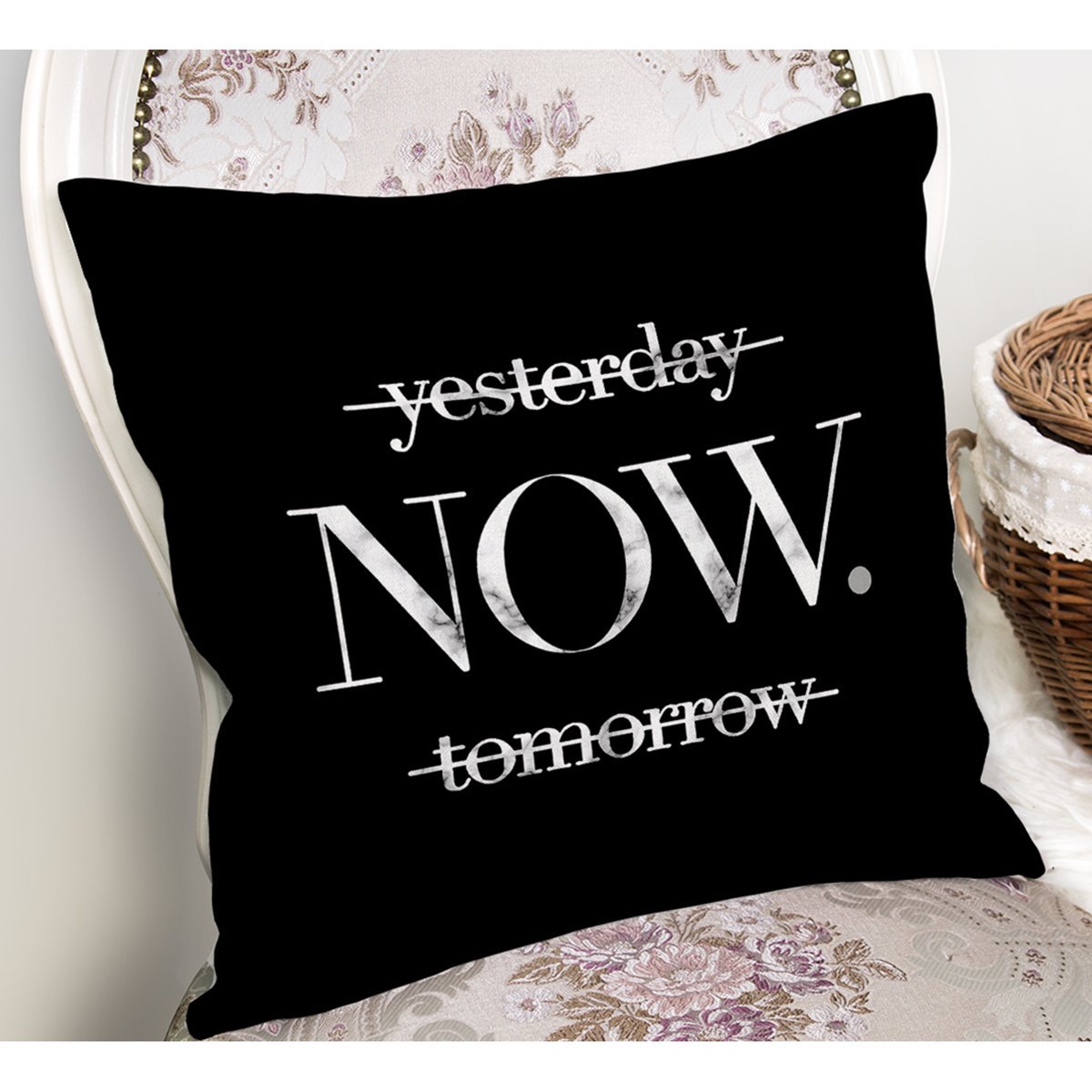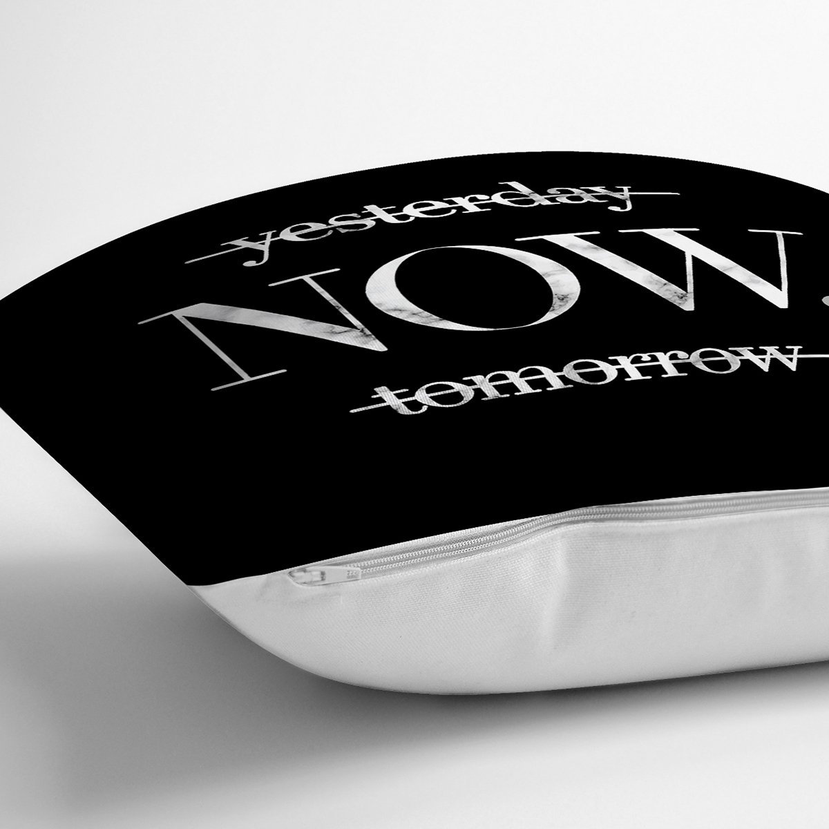 Siyah Zeminde Mermer Motifli NOW Yazılı Modern Yastık Kırlent Kılıfı