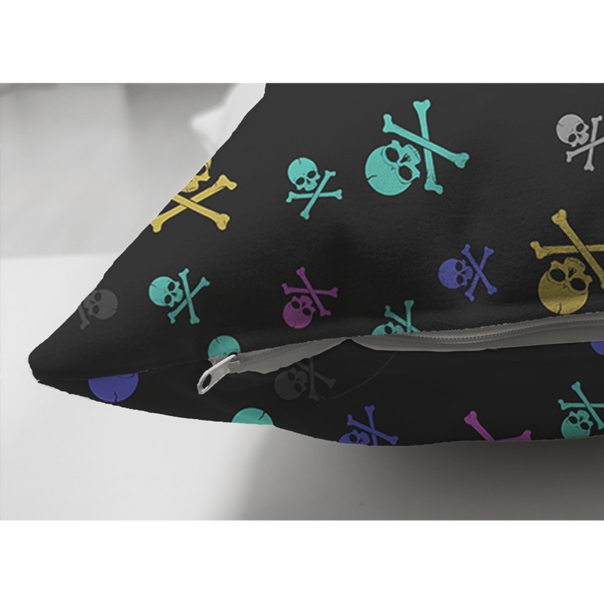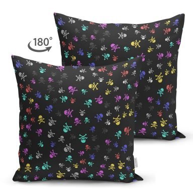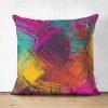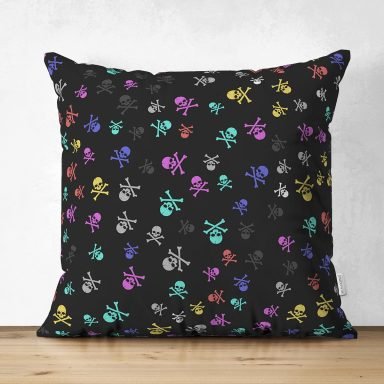Siyah Zeminde Renkli Motifler Dijital Baskılı Modern Süet Yastık Kırlent Kılıfı