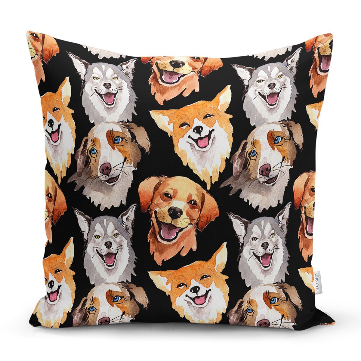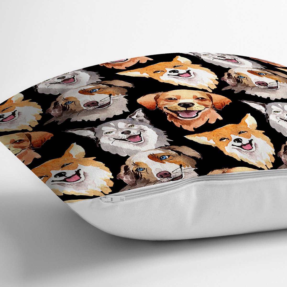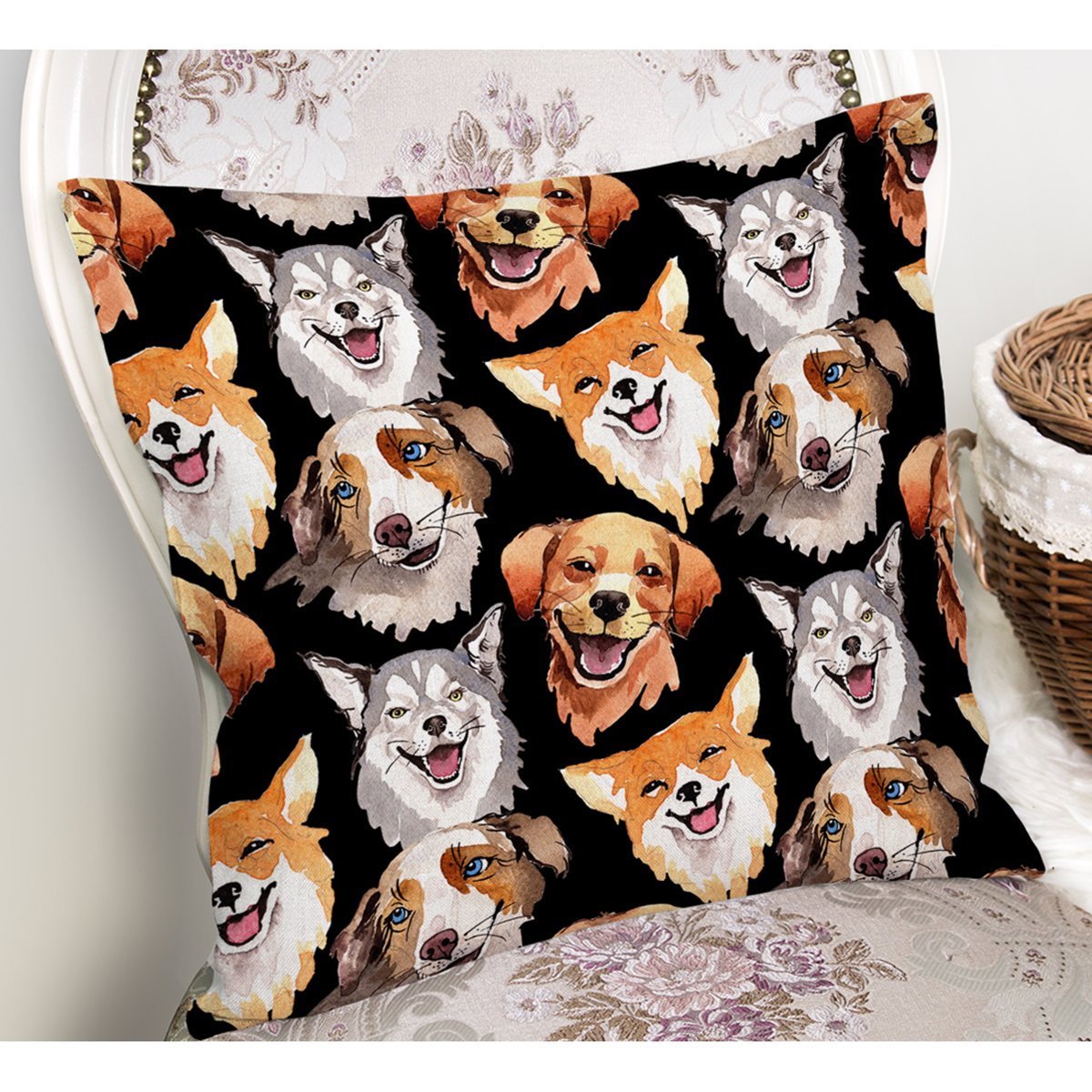 Siyah Zemindeki Sevimli Köpekler Modern Yastık Kırlent Kılıfı
