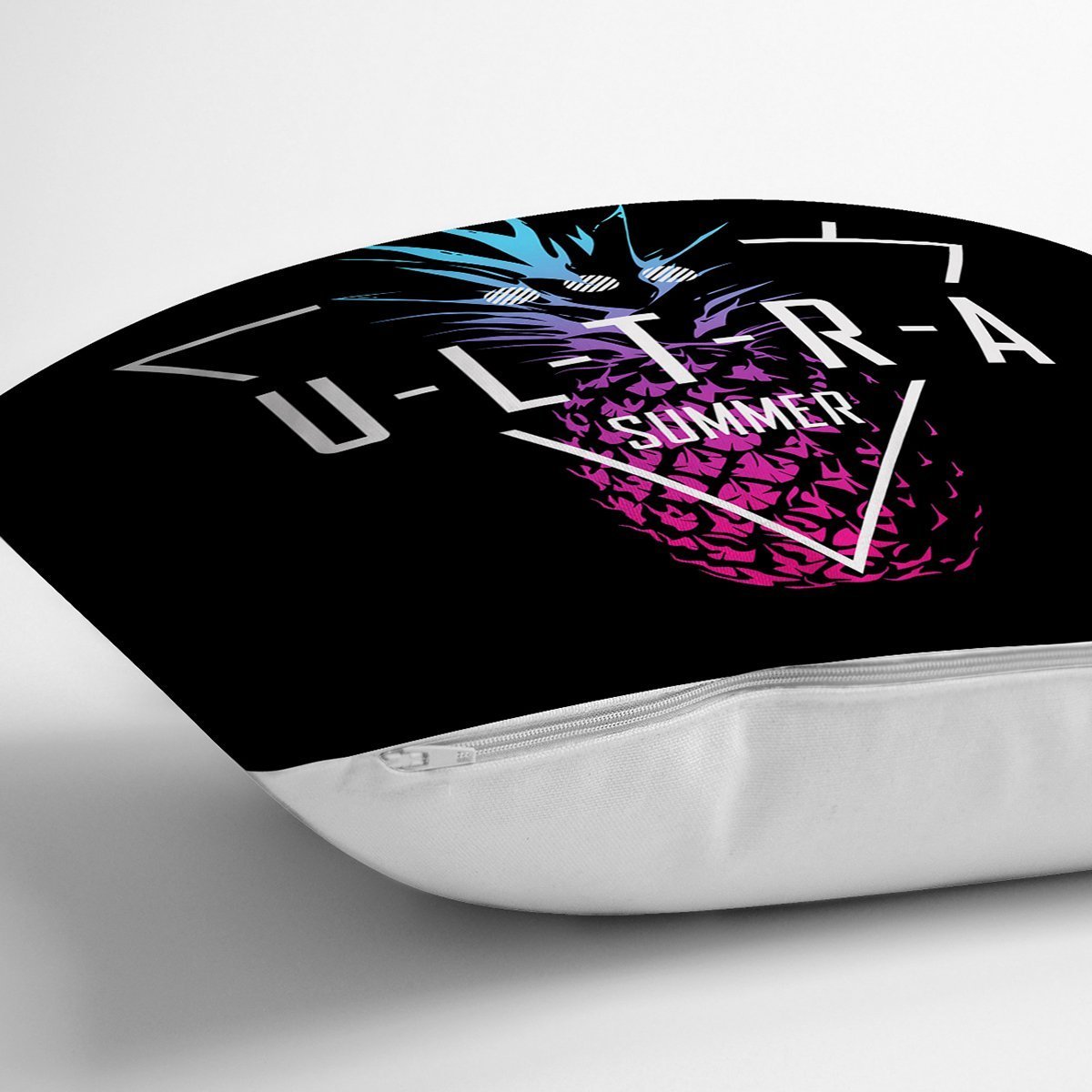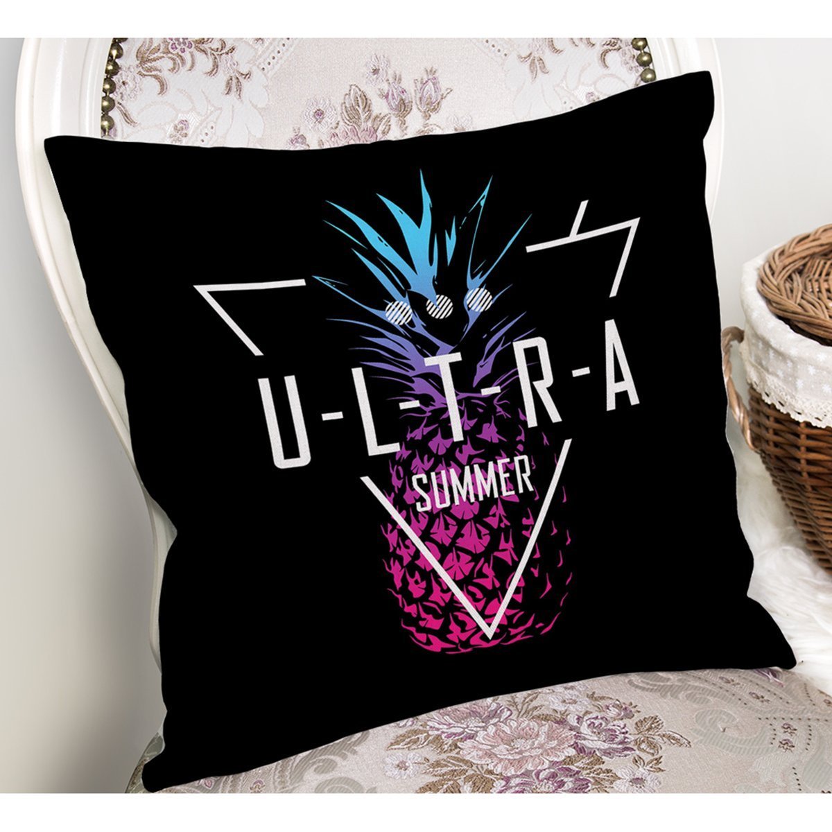 Siyah Zeminli Ultra Summer Tasarımlı Modern Yastık Kırlent Kılıfı