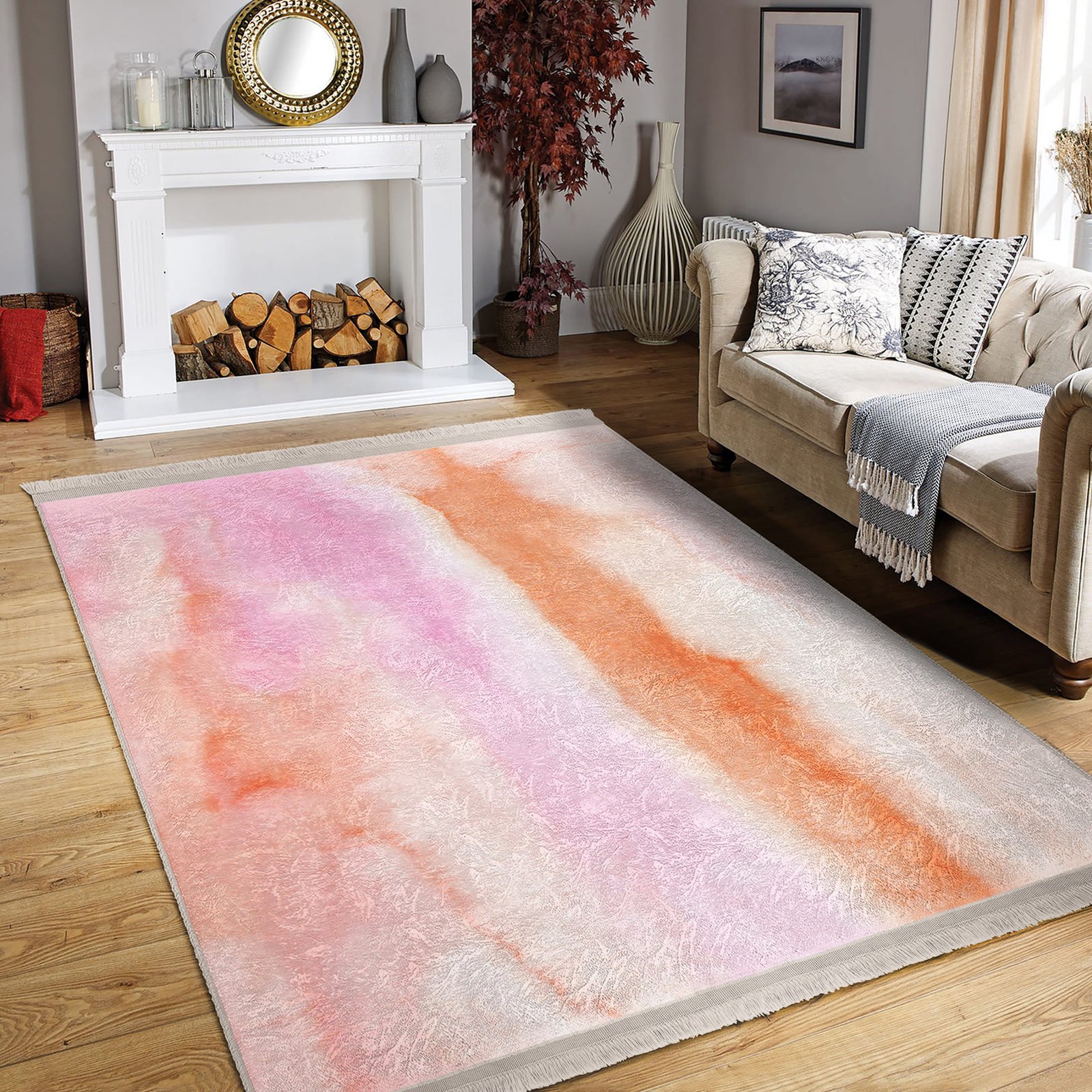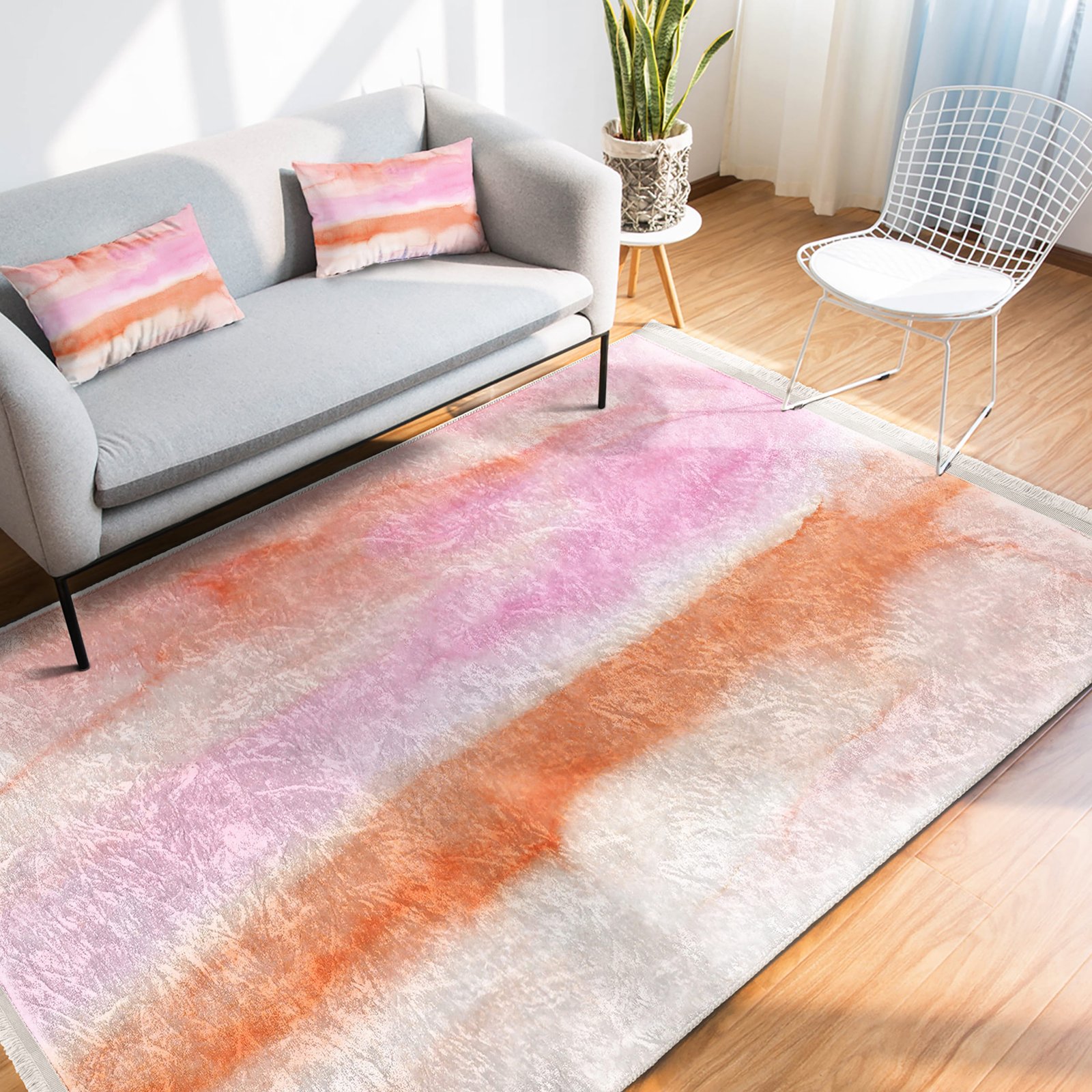 Su Renkli Pastel Desenli Salon İçin Makinede Yıkanabilir Kaymaz Taban Halı – Dikdörtgen Modelleriyle