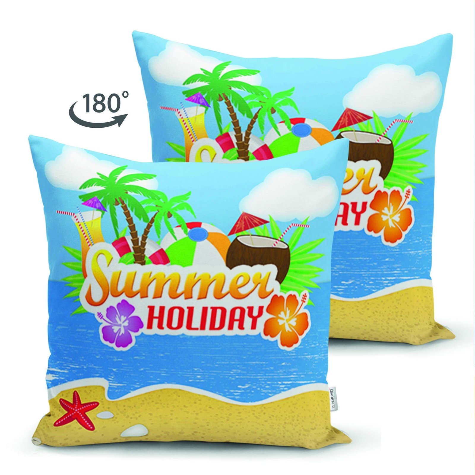Summer Holiday Özel Tasarımlı Dijital Baskılı Modern Süet Yastık Kırlent Kılıfı
