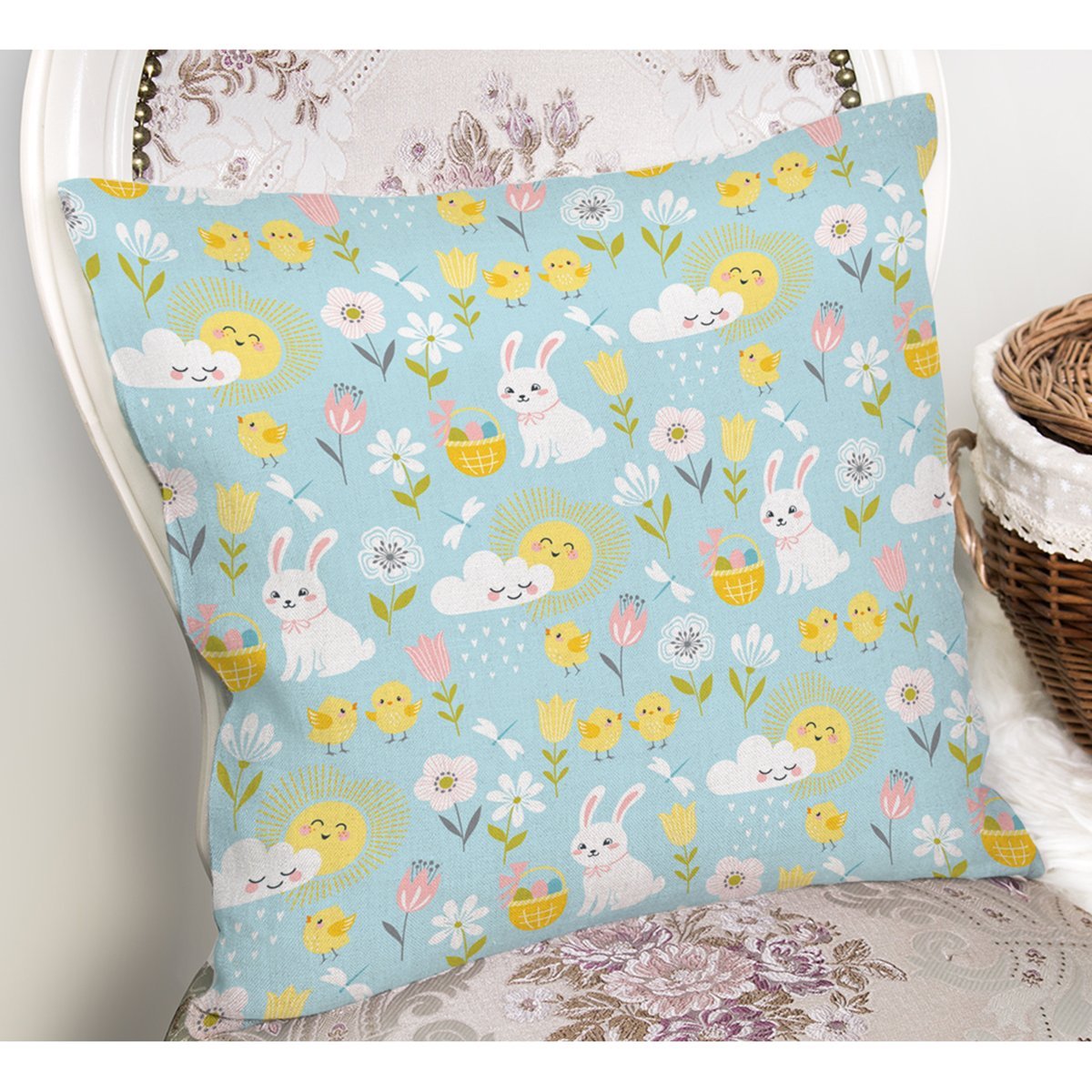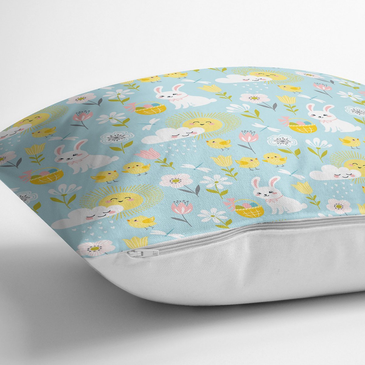 Tavşan Bulut Ve Güneş Desenli Dijital Baskılı Özel Tasarım Modern Yastık Kırlent Kılıfı