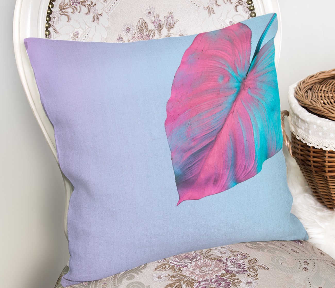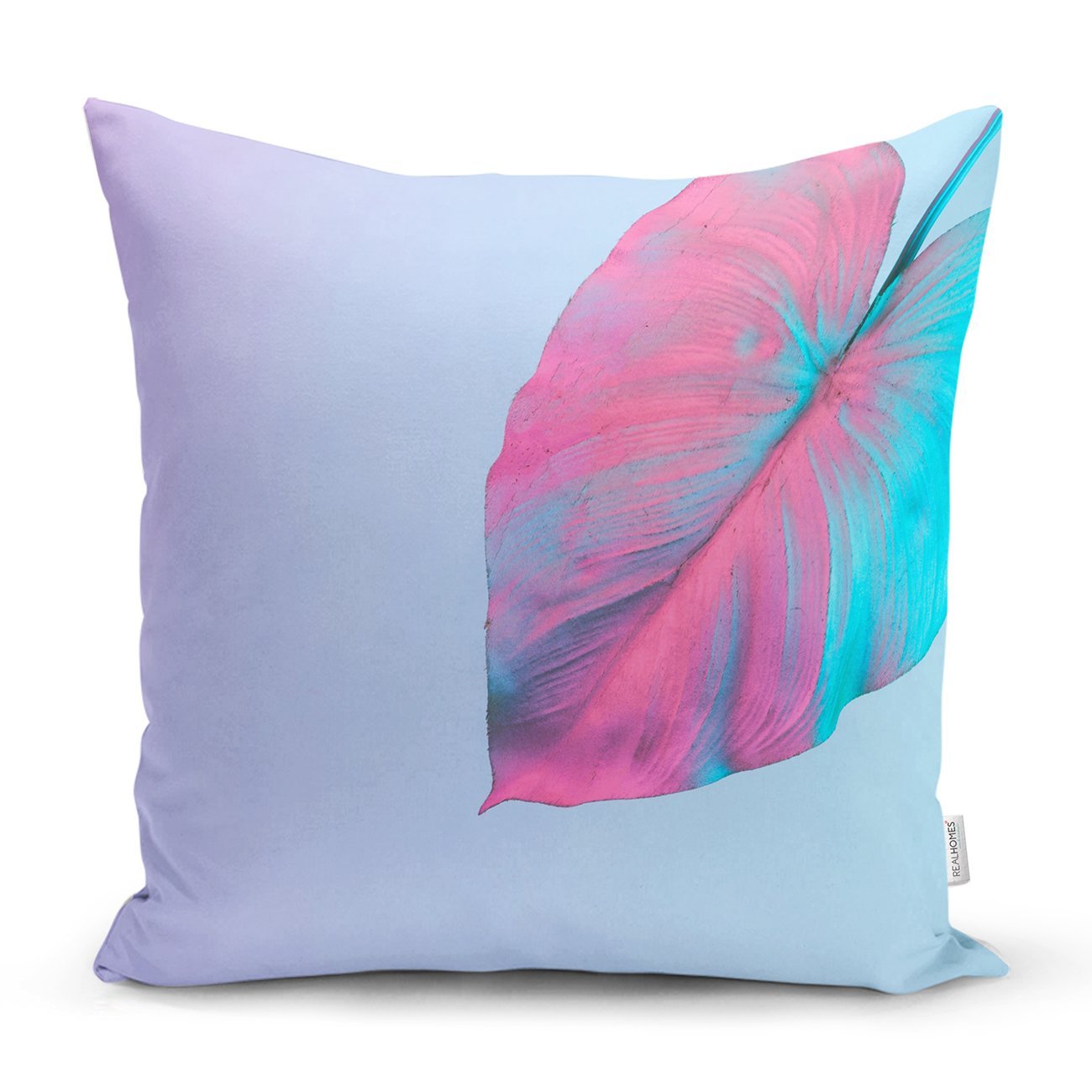 Toz Mavisi Zeminli Tropik Yapraklı Özel Tasarım Moderen Kırlent Kılıfı