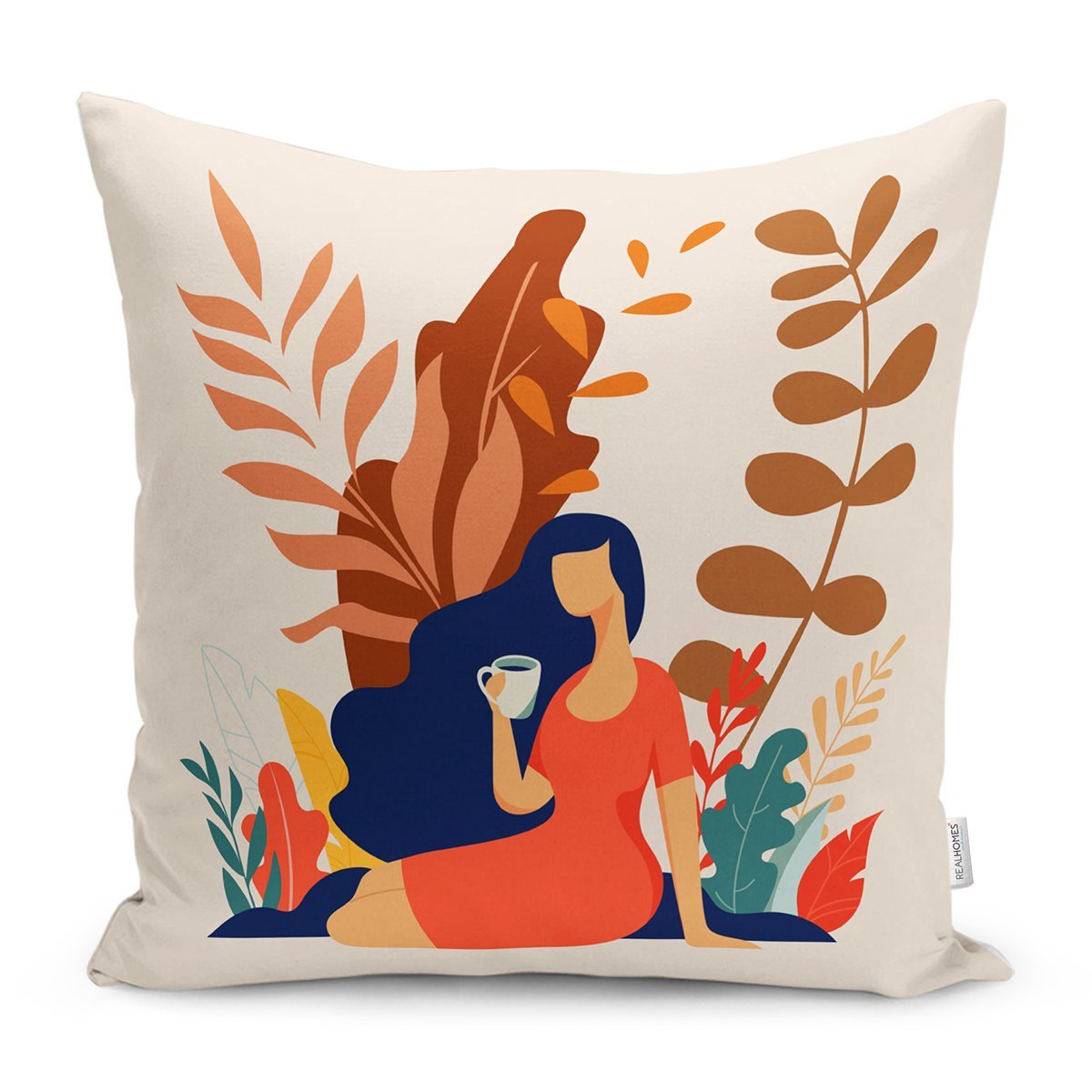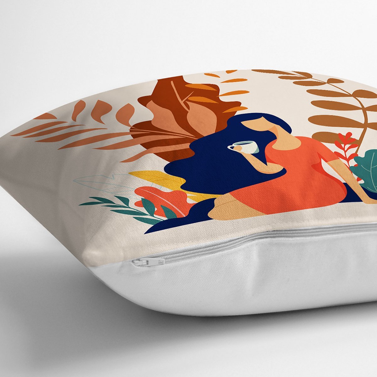 Tropik Yapraklar Kadın Figürlü Modern Yastık Kırlent Kılıfı