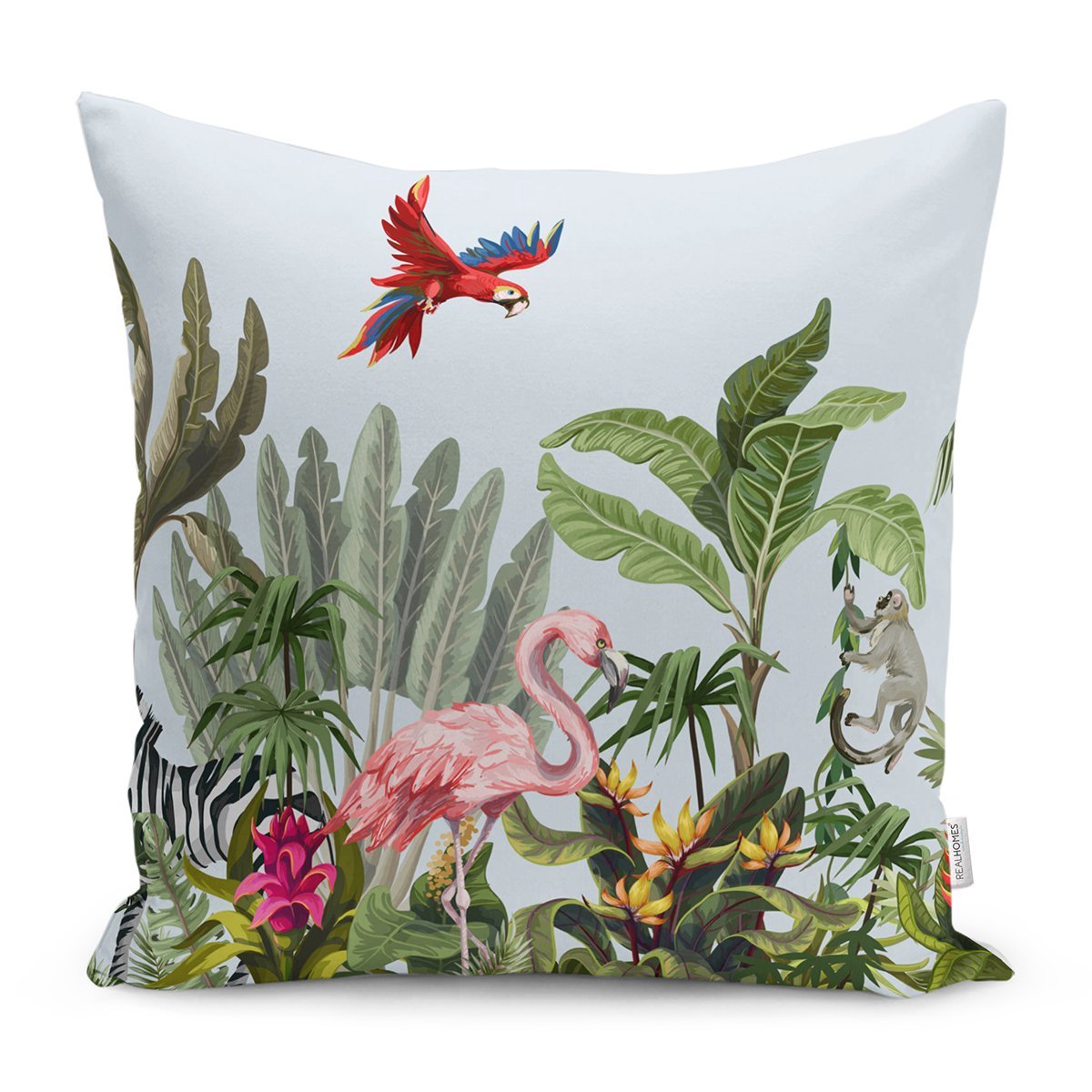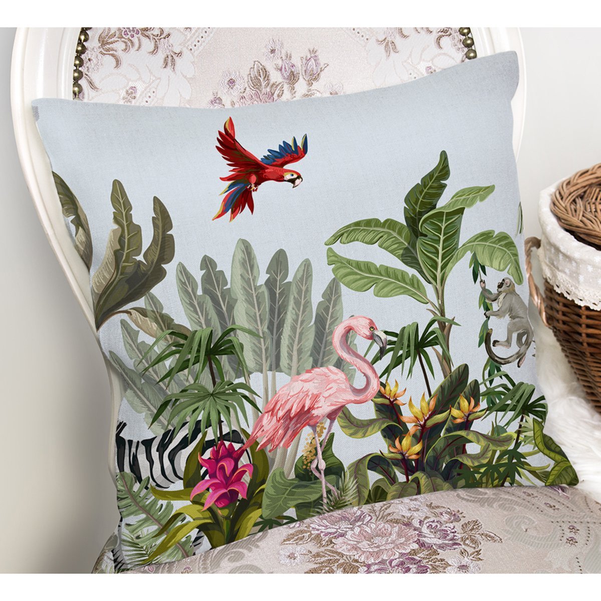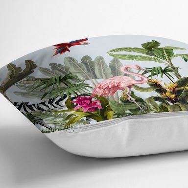 Tropikal Orman Yaprakları & Hayvanları Dijital Baskılı Kırlent Kılıfı