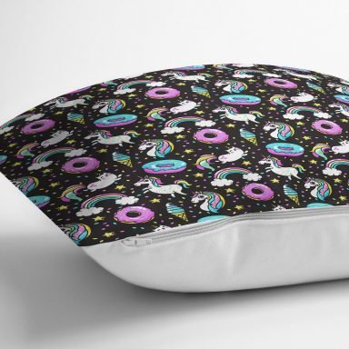 Unicorn Ve Donut Desenli Dijital Baskılı Özel Tasarım Modern Yastık Kırlent Kılıfı