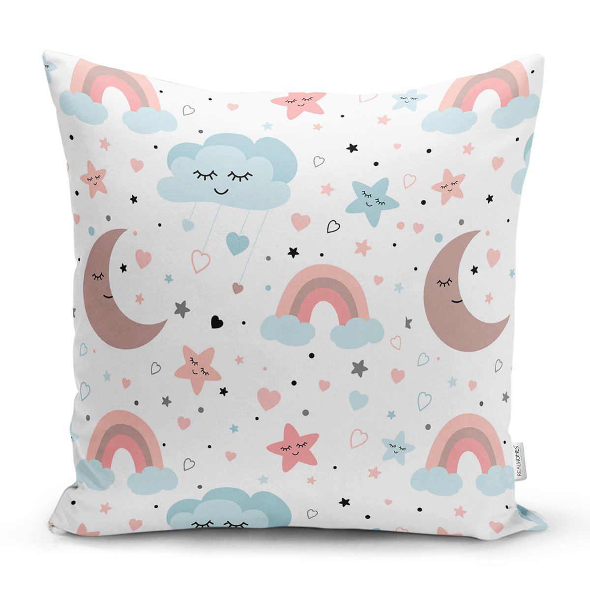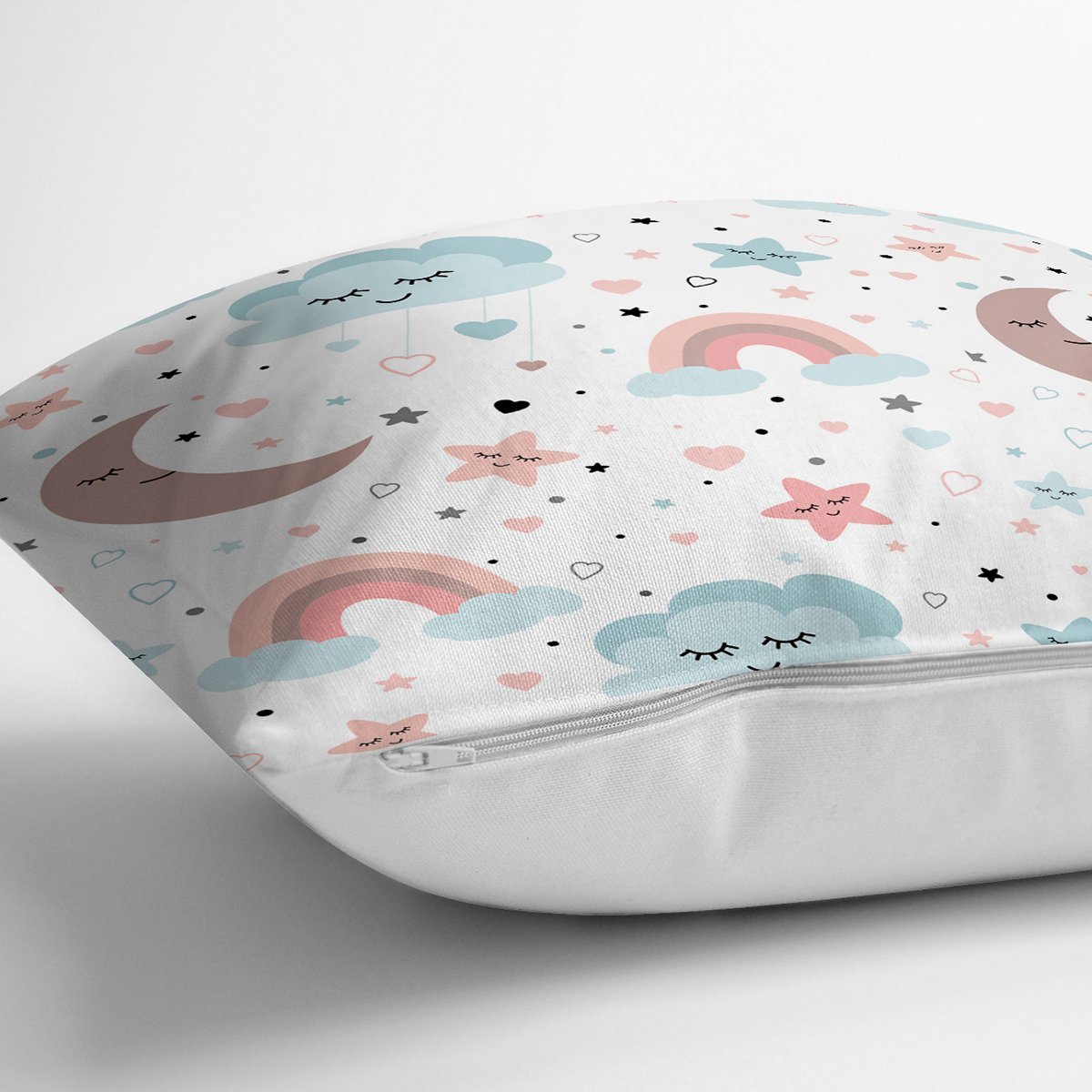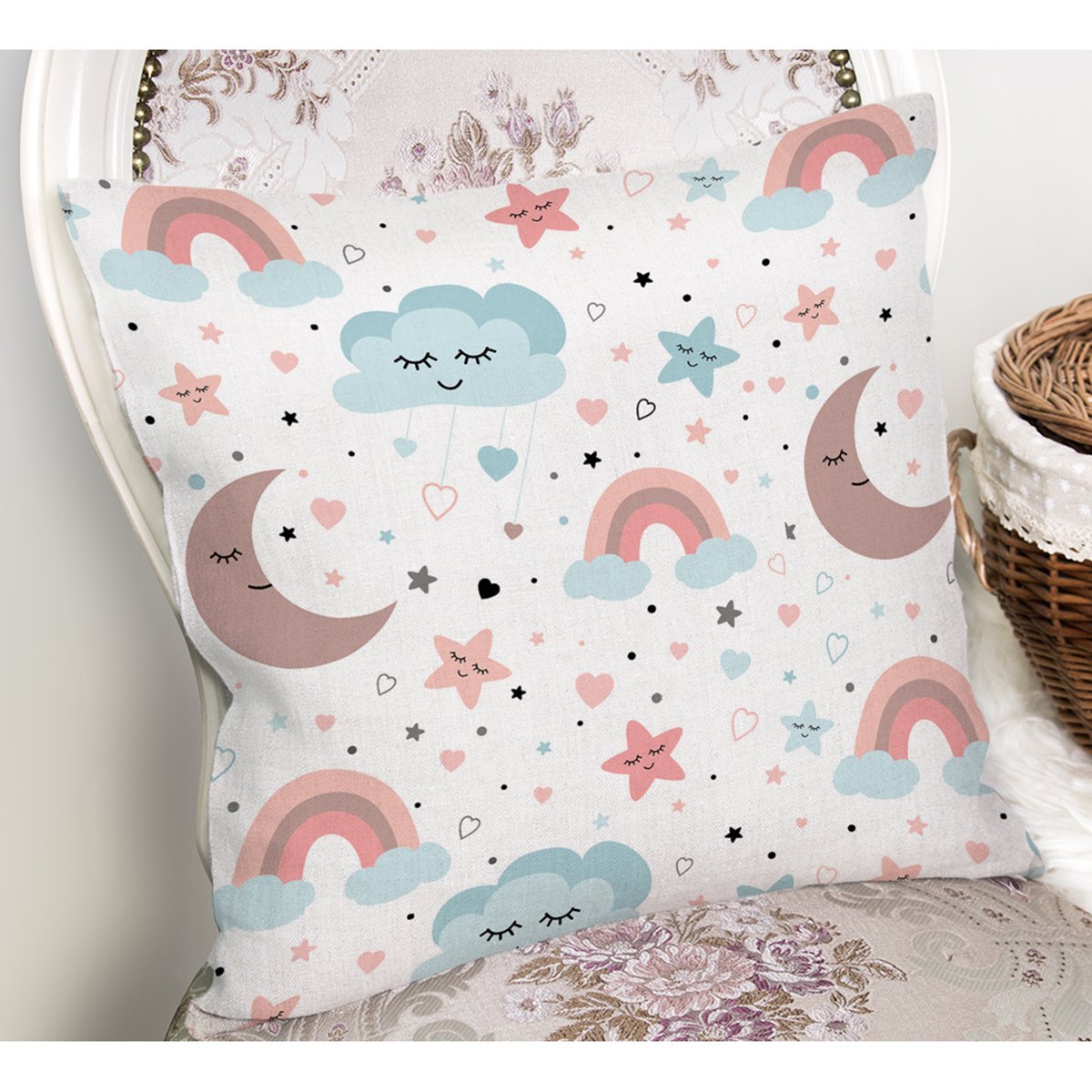 Uyku Odası Bulut Ve Ay Desenli Dijital Baskılı Özel Tasarım Modern Yastık Kırlent Kılıfı
