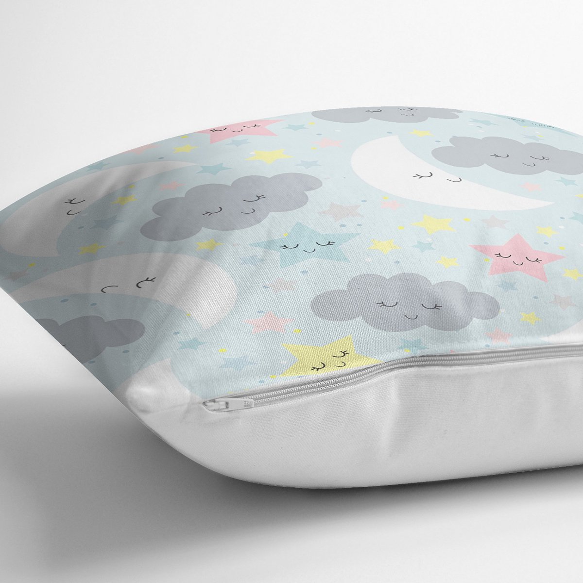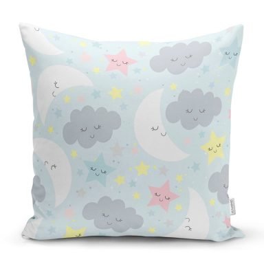 Uyku Temalı Sevimli Ay Ve Yıldızlar Dijital Baskılı Özel Tasarım Modern Yastık Kırlent Kılıfı