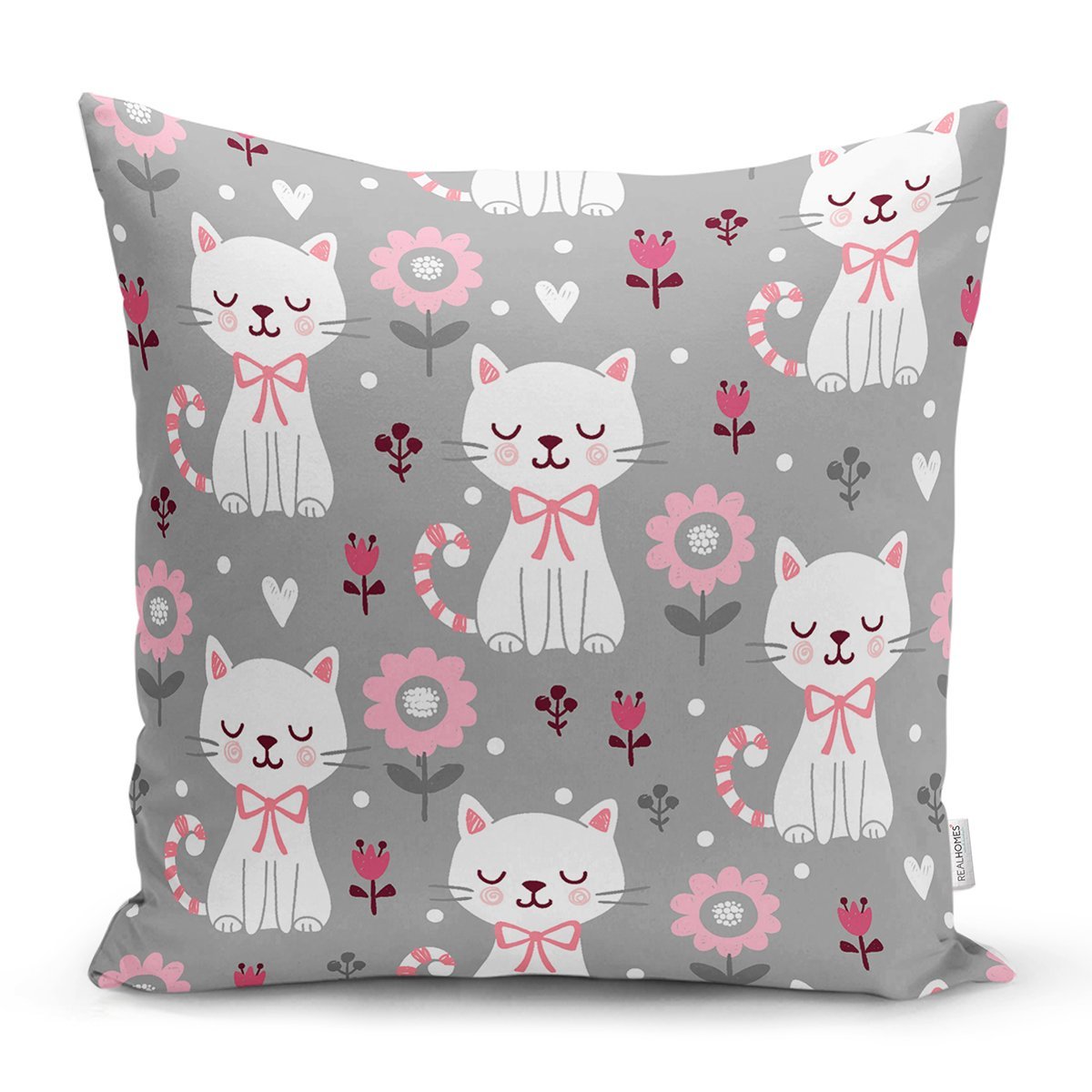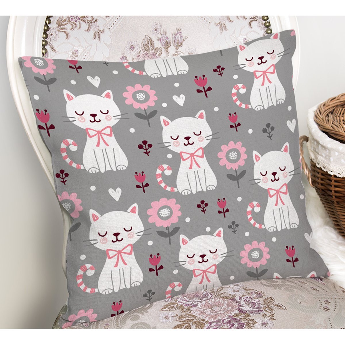 Uyuyan Kedi Desenli Dijital Baskılı Özel Tasarım Modern Yastık Kırlent Kılıfı