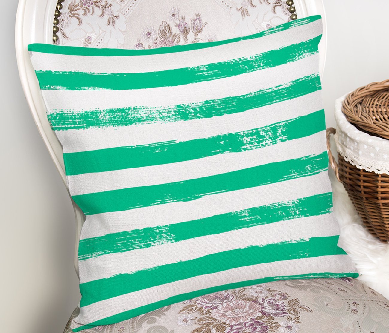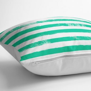 Yeşil Çizgili Motifli Dekoratif Modern Yastık Kılıfı