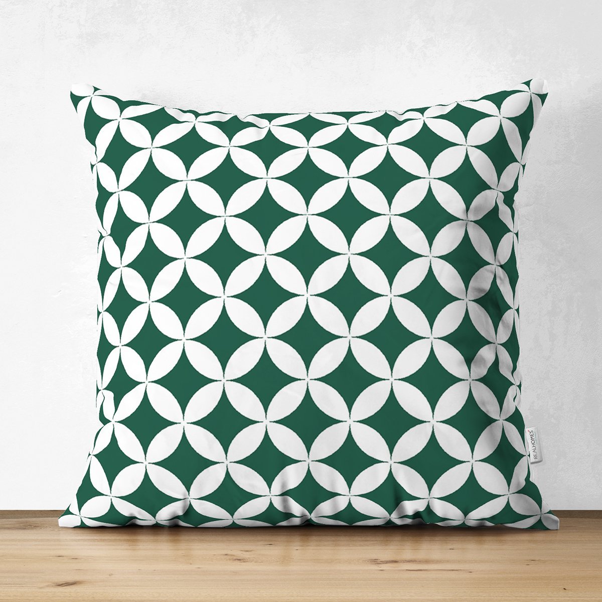 Yeşil Geometrik Çizimli Dijital Baskılı Modern Süet Yastık Kırlent Kılıfı