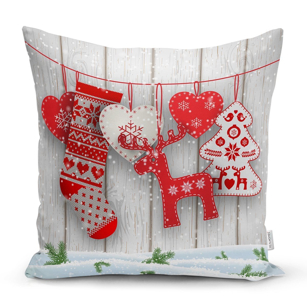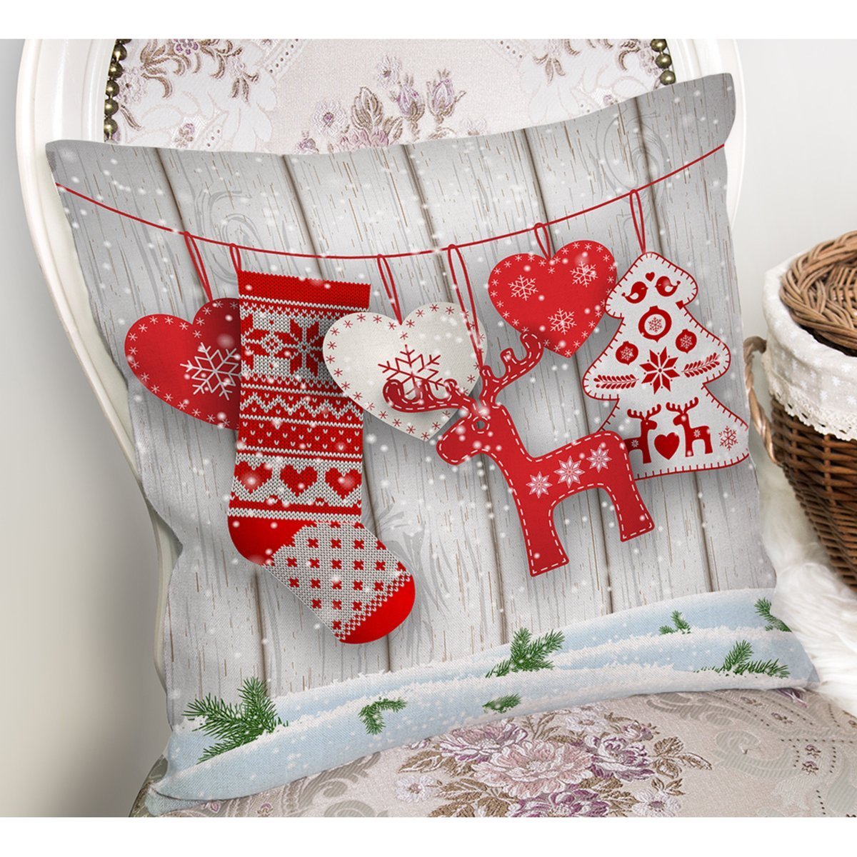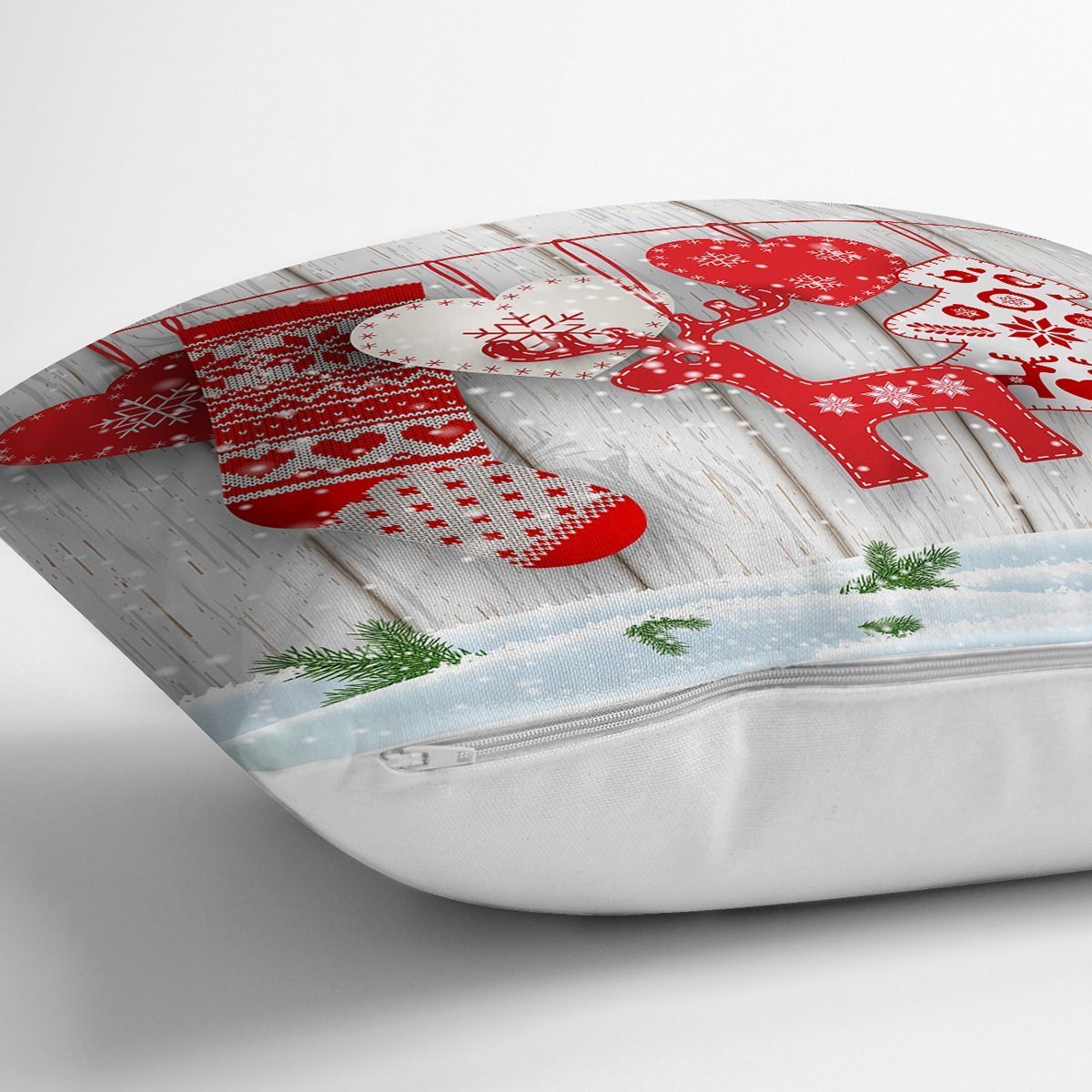 Yılbaşı Temalı Dijital Baskılı 3 D Yastık Kırlent Kılıfı