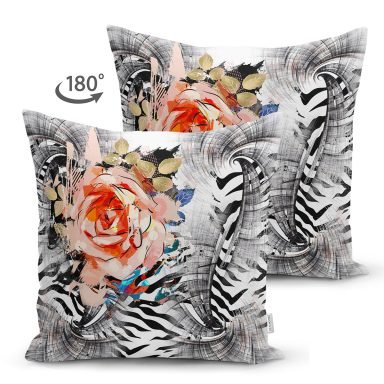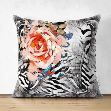Zebra Desen Zeminde Çiçek Motifli Özel Tasarım Dijital Baskılı Modern Süet Yastık Kırlent Kılıfı