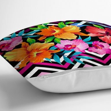 Zigzag ve Çiçekler Özel Tasarım Dekoratif Yastık Kırlent Kılıfı
