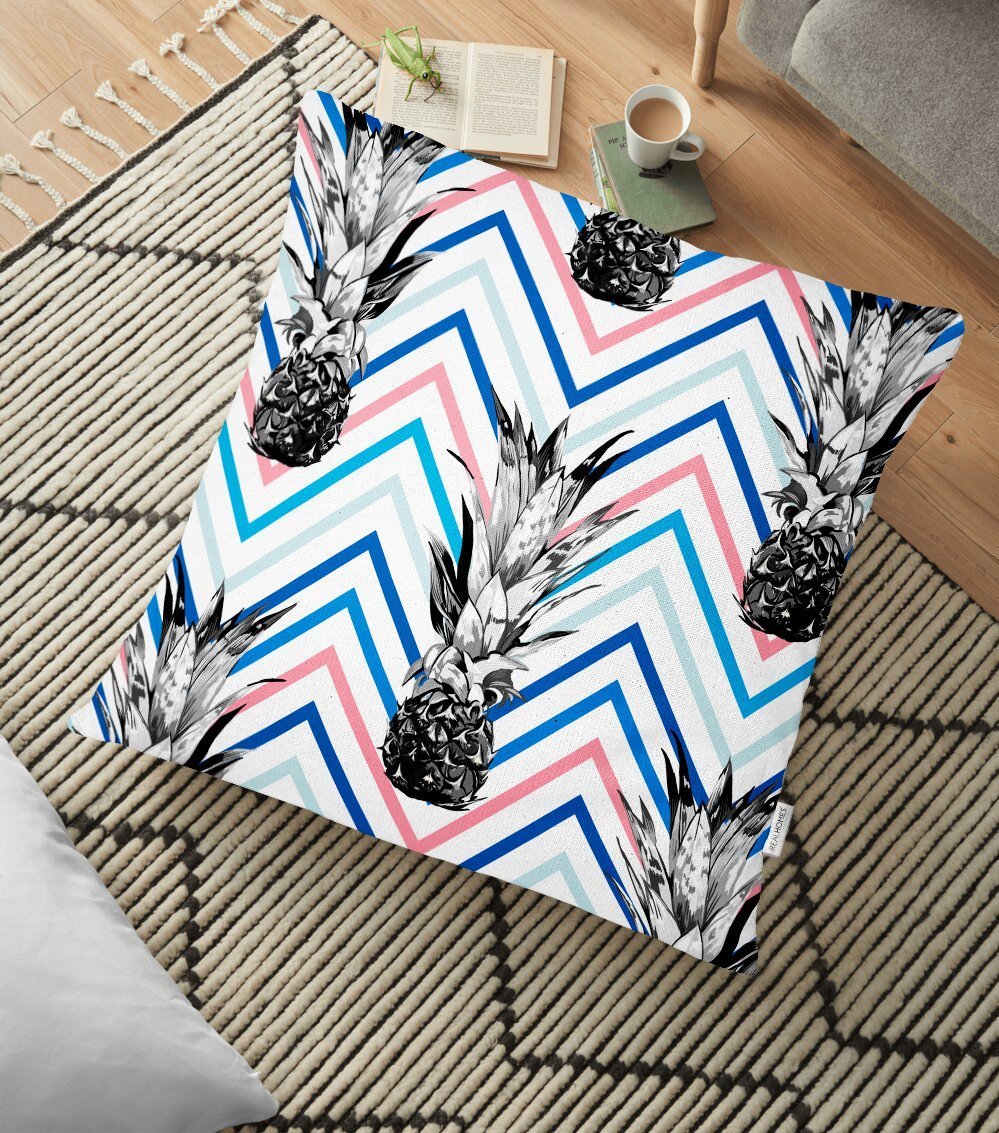Zigzag Zeminde Ananaslar Dekoratif Yer Minderi – 70 x 70 cm