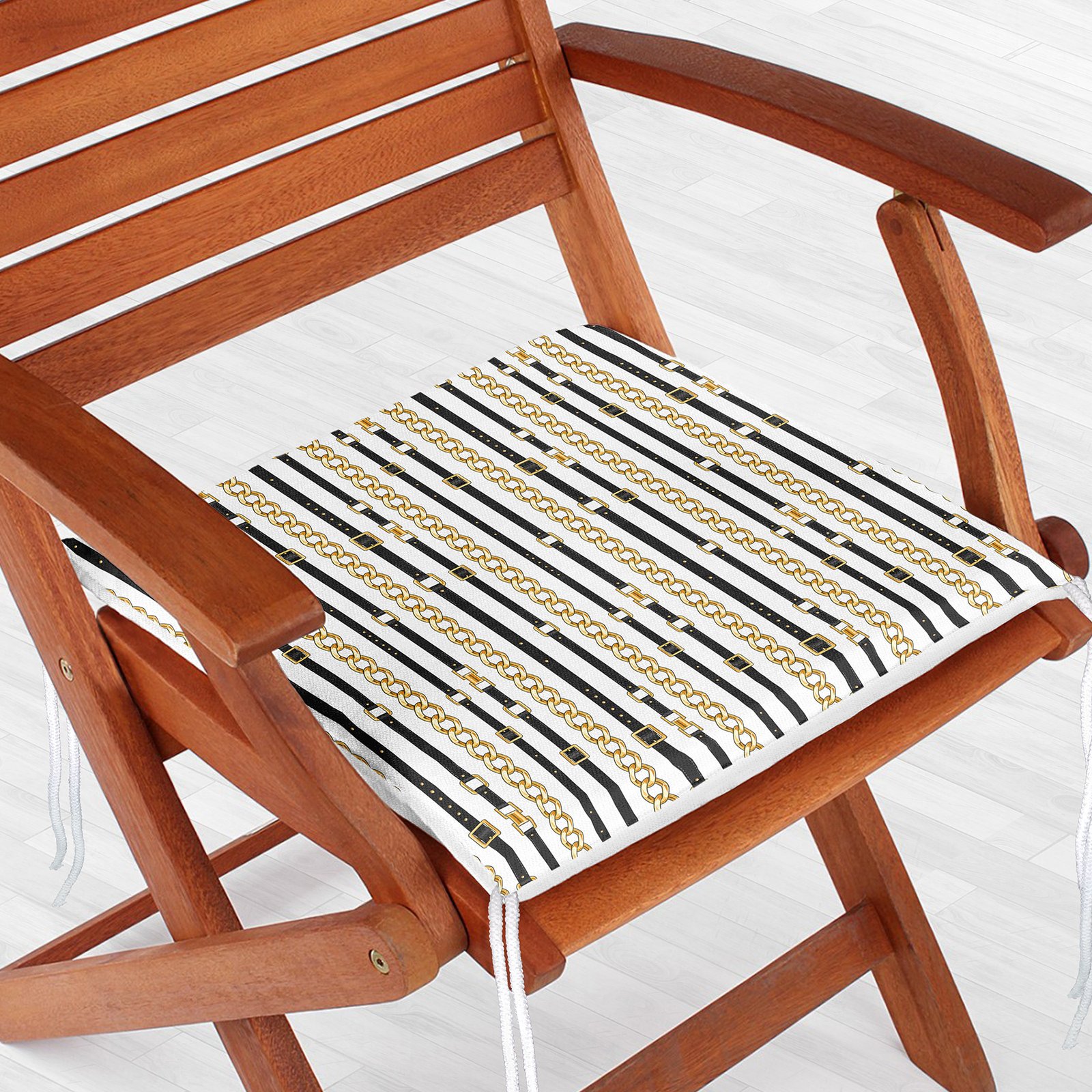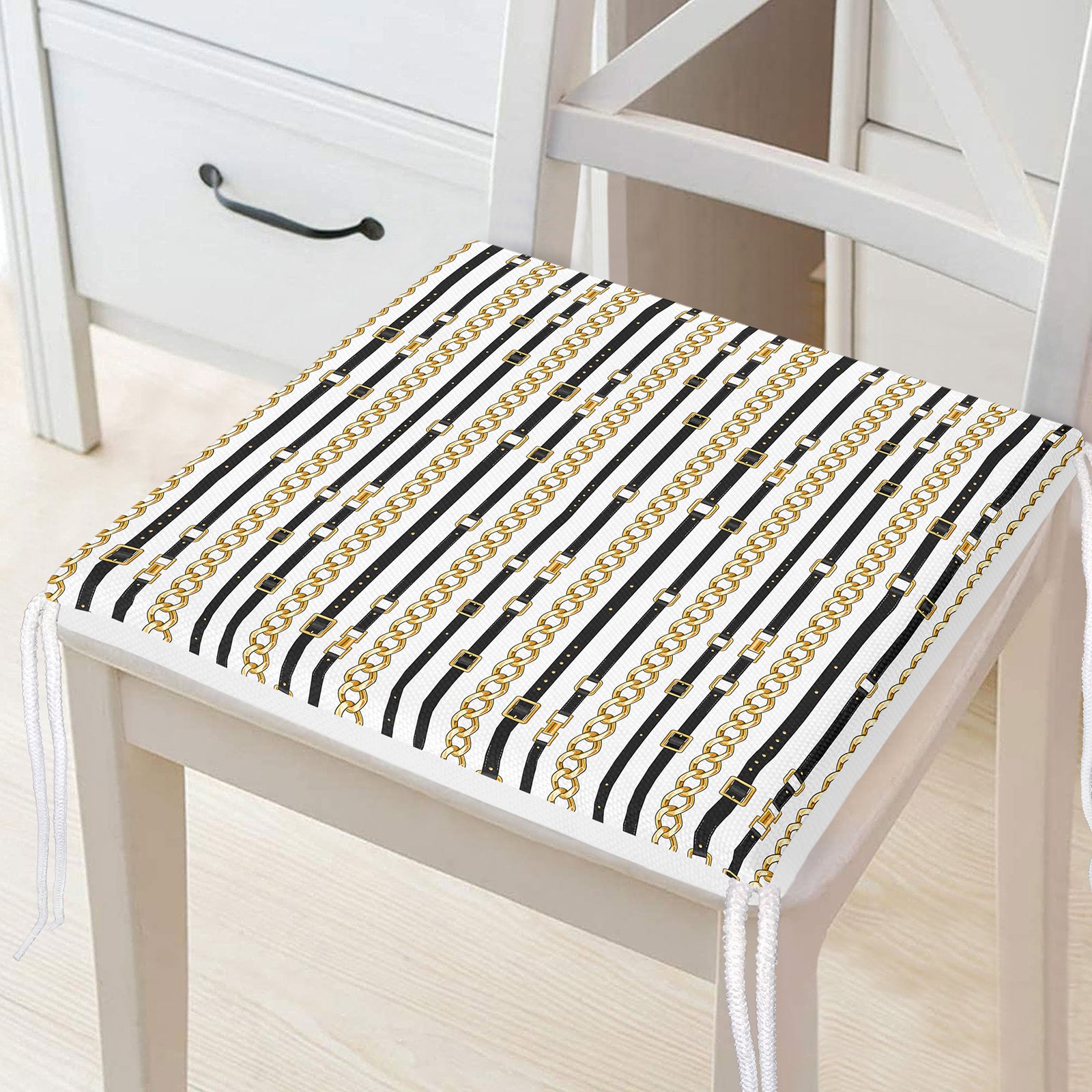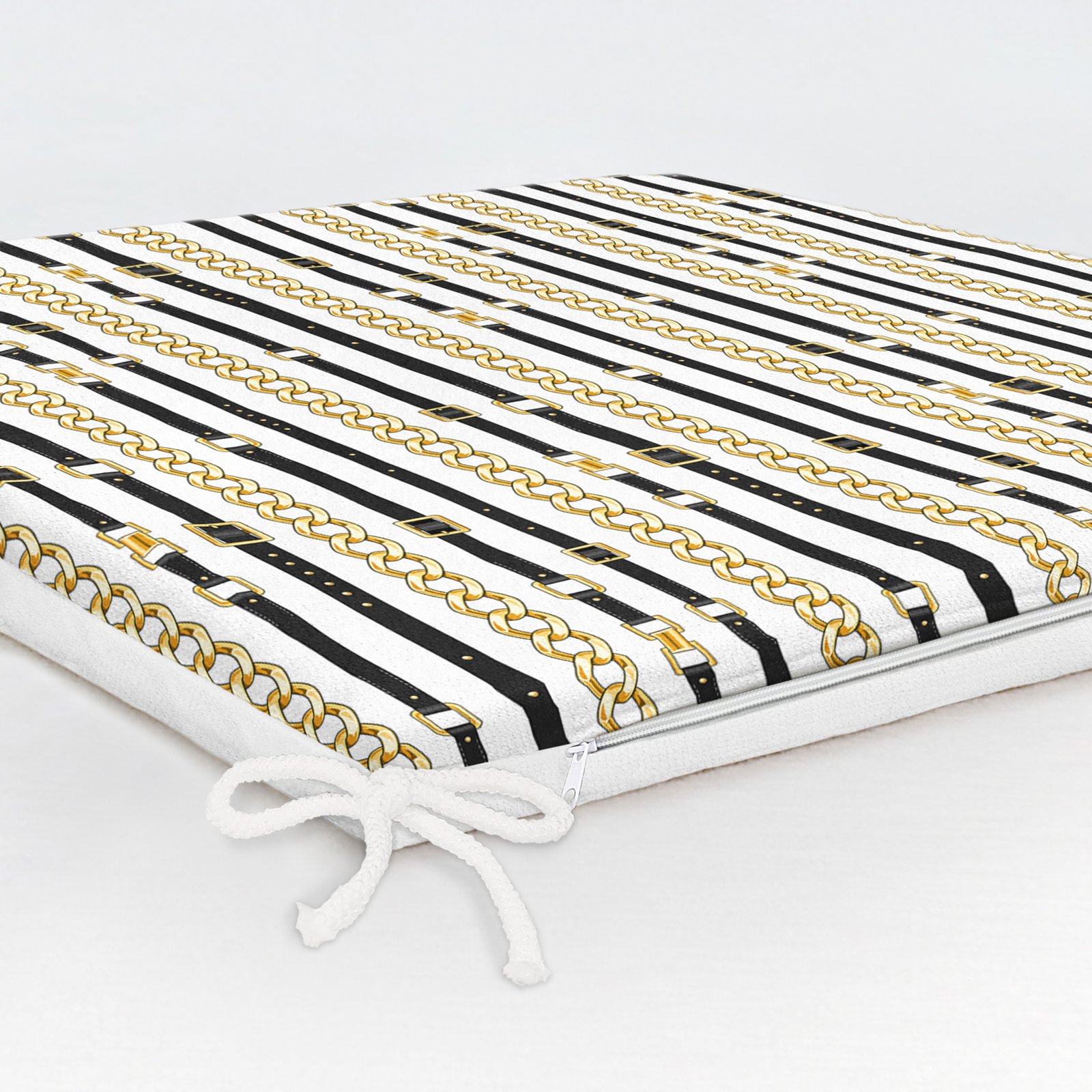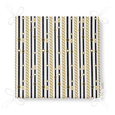 Zincir Ve Kemerli Özel Tasarım Dijital Baskılı Modern Fermuarlı Sandalye Minderi